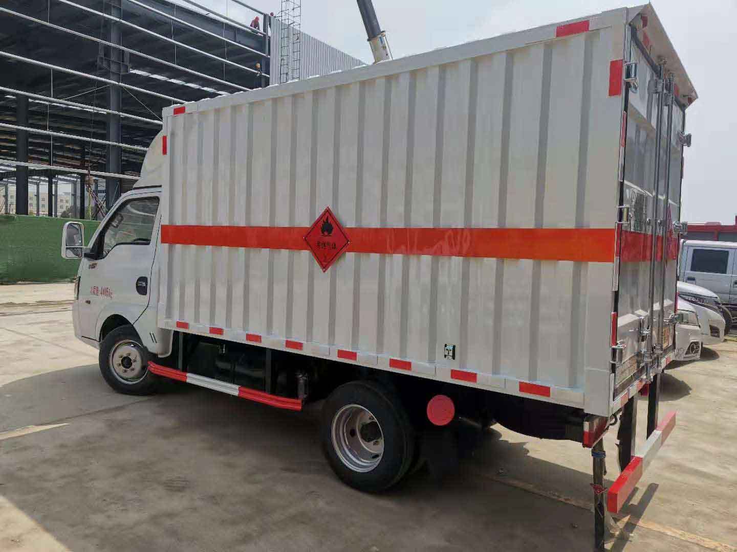 東風(fēng)途逸國六瓦楞板危險(xiǎn)品車廂體材質(zhì)為瓦楞廂體,底部鋪有阻燃導(dǎo)靜電膠板,廂體側(cè)面裝有固定拉環(huán)。在車廂內(nèi)頂部安裝感煙報(bào)警器,在門器框上方安裝有防盜報(bào)警器,廂體外側(cè)安裝示廓燈及滅火器支架,配置兩個(gè)滅火器,并有“嚴(yán)禁煙火”和“易燃?xì)怏w”等字樣,廂體周邊貼反光標(biāo)識(shí)。后門貼有安全告示,危險(xiǎn)品標(biāo)牌。車輛尾部副梁安裝兩條拖地導(dǎo)靜電帶,駕駛室頂部裝有安全三角燈。廂體顏色可定制:黃、白、灰色等。
