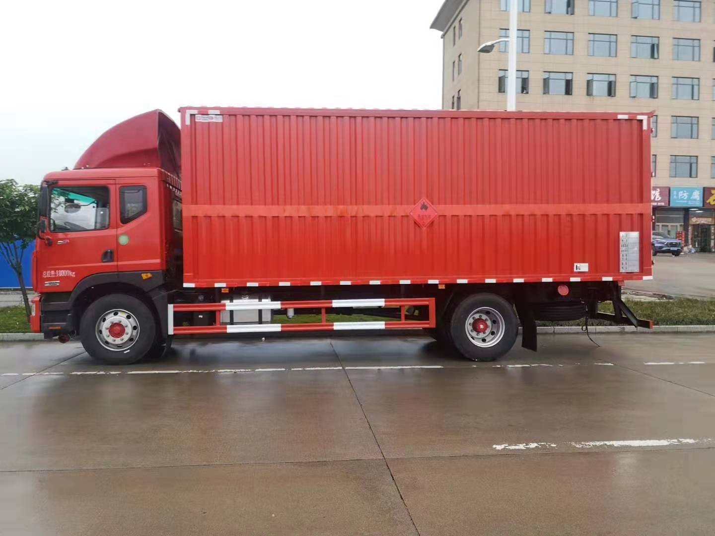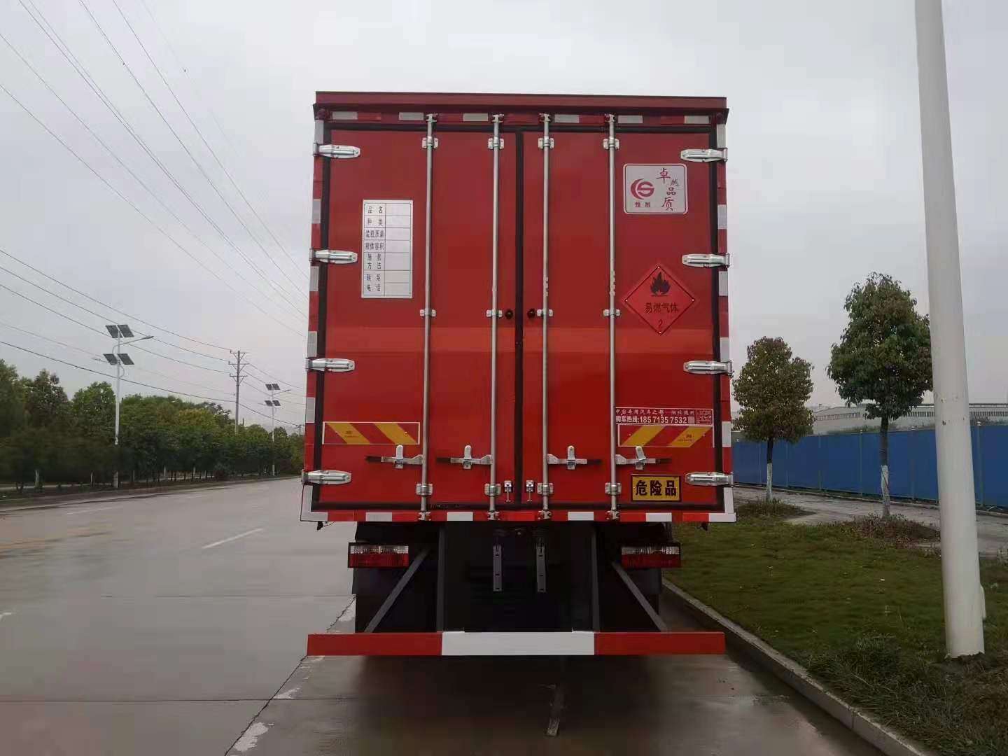 紅色東風D9易燃氣體廂式車采用東風D9危險品車專用底盤,東風股份排半駕駛室,斷氣剎,康明斯220馬力D4.5NS6B220,法士特8JS85變速箱,295/80R22.5輪胎,帶空調助力,電動玻璃,中控門鎖,氣囊座椅,空氣懸掛,防爆胎,ECU限速,ABS,符合2021年新法規(guī)要求:前輪單胎胎壓監(jiān)測TPMS/電控制動系統(tǒng)EBS/車道偏離報警LDWS/前向碰撞預警FCWS/疲勞駕駛提醒。6.8米廂體長度,瓦楞板廂體。