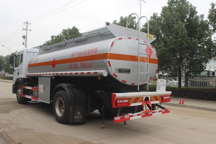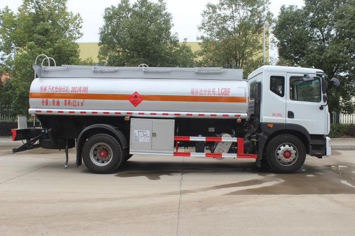 東風D9國六運油車嚴格按照公告尺寸及外形制作,公告容積: 12.4立方,罐體外形尺寸(mm):(長×寬×高)6000×2050×1300mm(實際容積12.5立方),方圓罐,山東齒輪泵(能實現泵進泵出的移動泵站功能),罐體采用Q235碳鋼鋼板制作,水壓封頭,一套全歐標配置(歐標人孔蓋、海底閥帶緊急切斷裝置、下裝油系統、油氣回收、防溢流傳感器、靜電插座等),泵進泵出口及下裝口在副駕一側,海底閥5公里駕駛室語音報警裝置,正駕一側安裝正星大流量加油機及15米絞盤,鐵制護欄,靜電卷盤,靜電拖帶,爬梯,一個工具箱,兩具滅火器,罐體顏色銀灰色,罐體左、右、后貼3個“易燃液體標識” ,配兩根與管道箱同長的輸油管及快接頭。