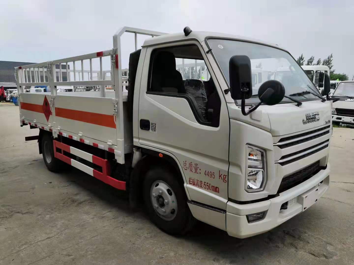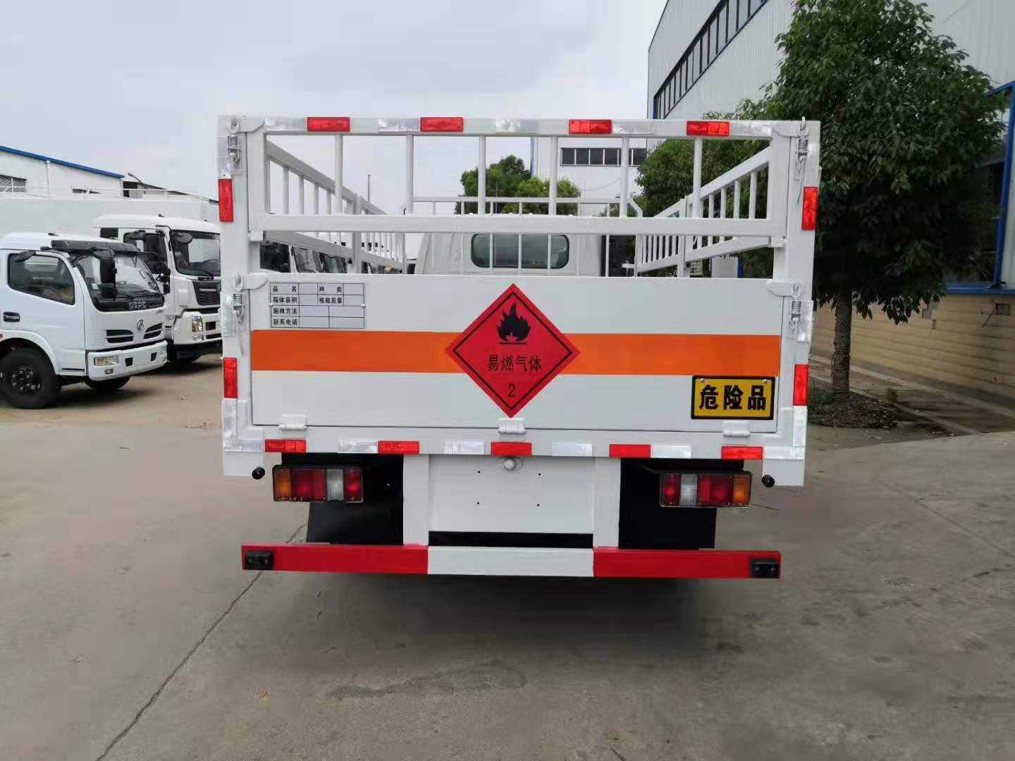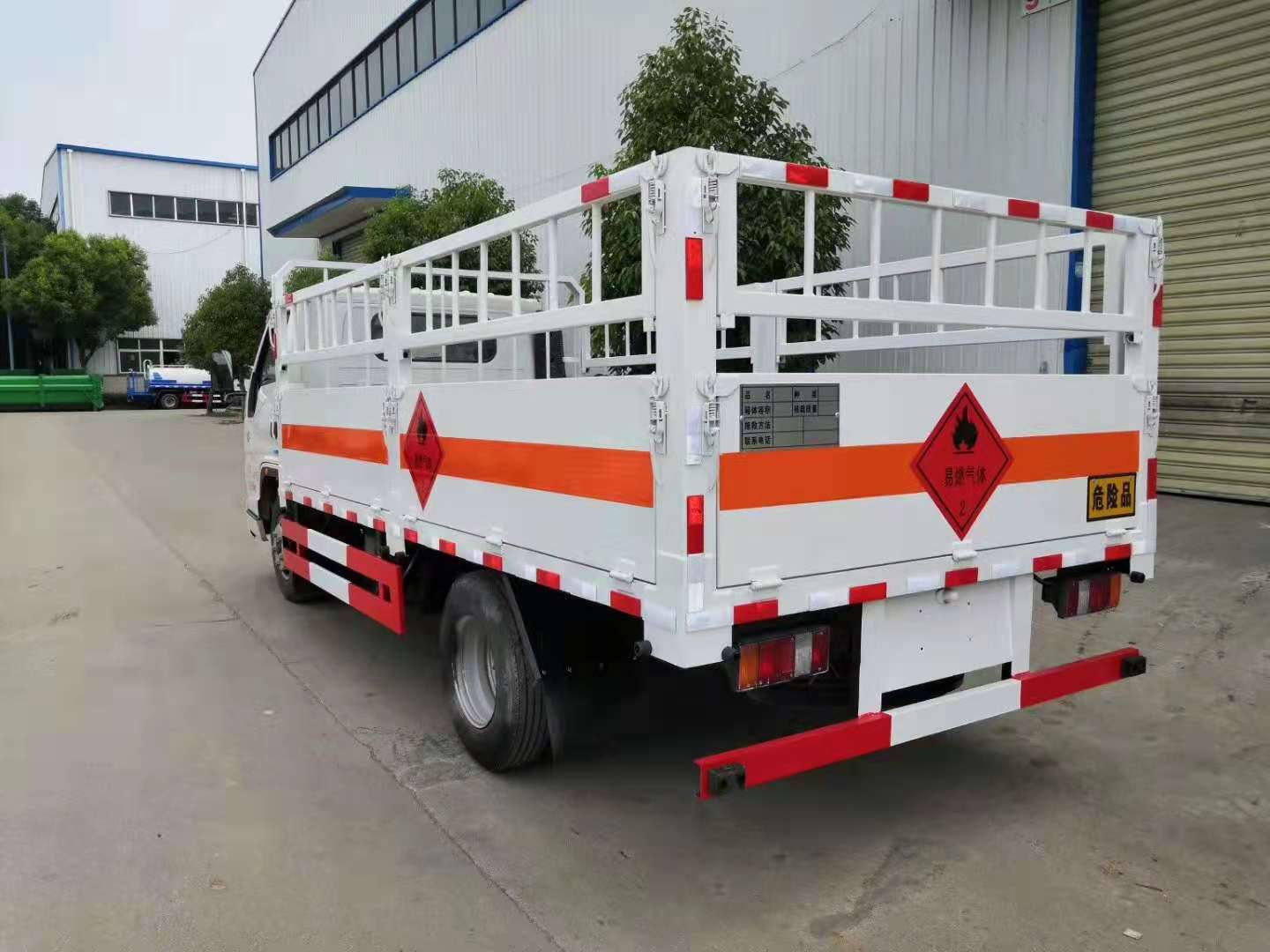 江鈴國六寬體氣瓶運輸車箱體外形為倉欄式,邊板為瓦愣式可活動,上部為花籃市可拆卸,底板為3mm鋼板上面鋪防靜電膠皮,滅火器2個,大梁靜電帶,嚴格按照國家危險品相關法規張貼危險品標識和反光標牌。ㄟx裝高欄或低欄,選裝液壓尾板)。