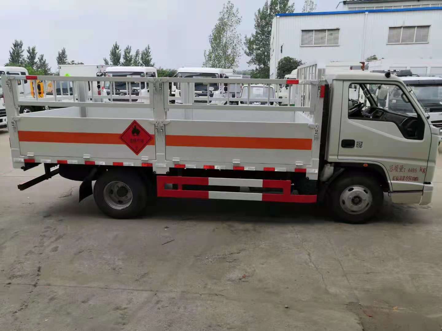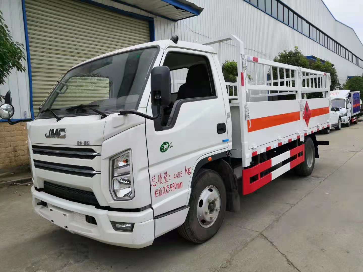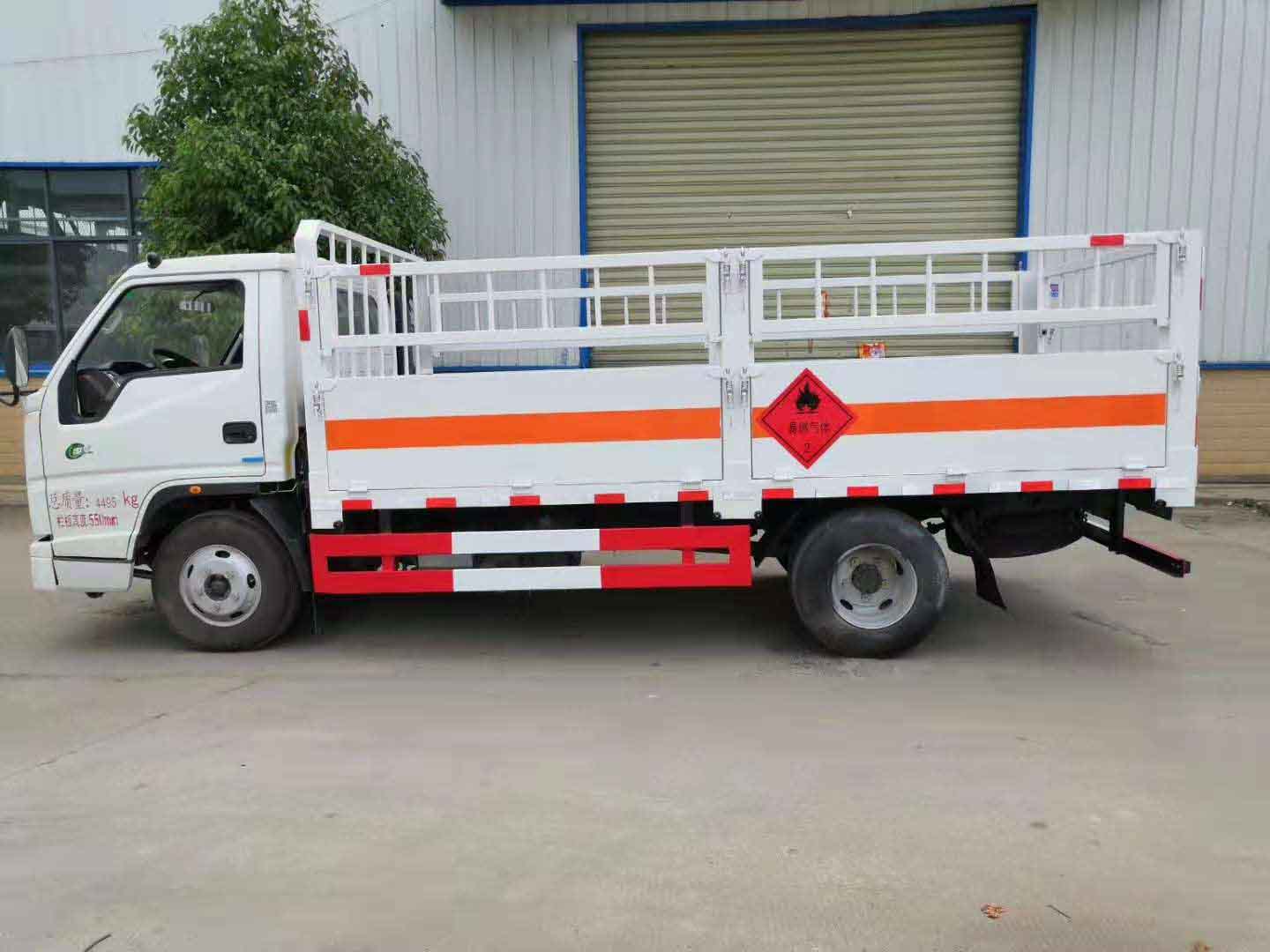 江鈴國六寬體氣瓶運輸車箱體外形為倉欄式,邊板為瓦愣式可活動,上部為花籃市可拆卸,底板為3mm鋼板上面鋪防靜電膠皮,滅火器2個,大梁靜電帶,嚴格按照國家危險品相關法規張貼危險品標識和反光標牌。ㄟx裝高欄或低欄,選裝液壓尾板)。