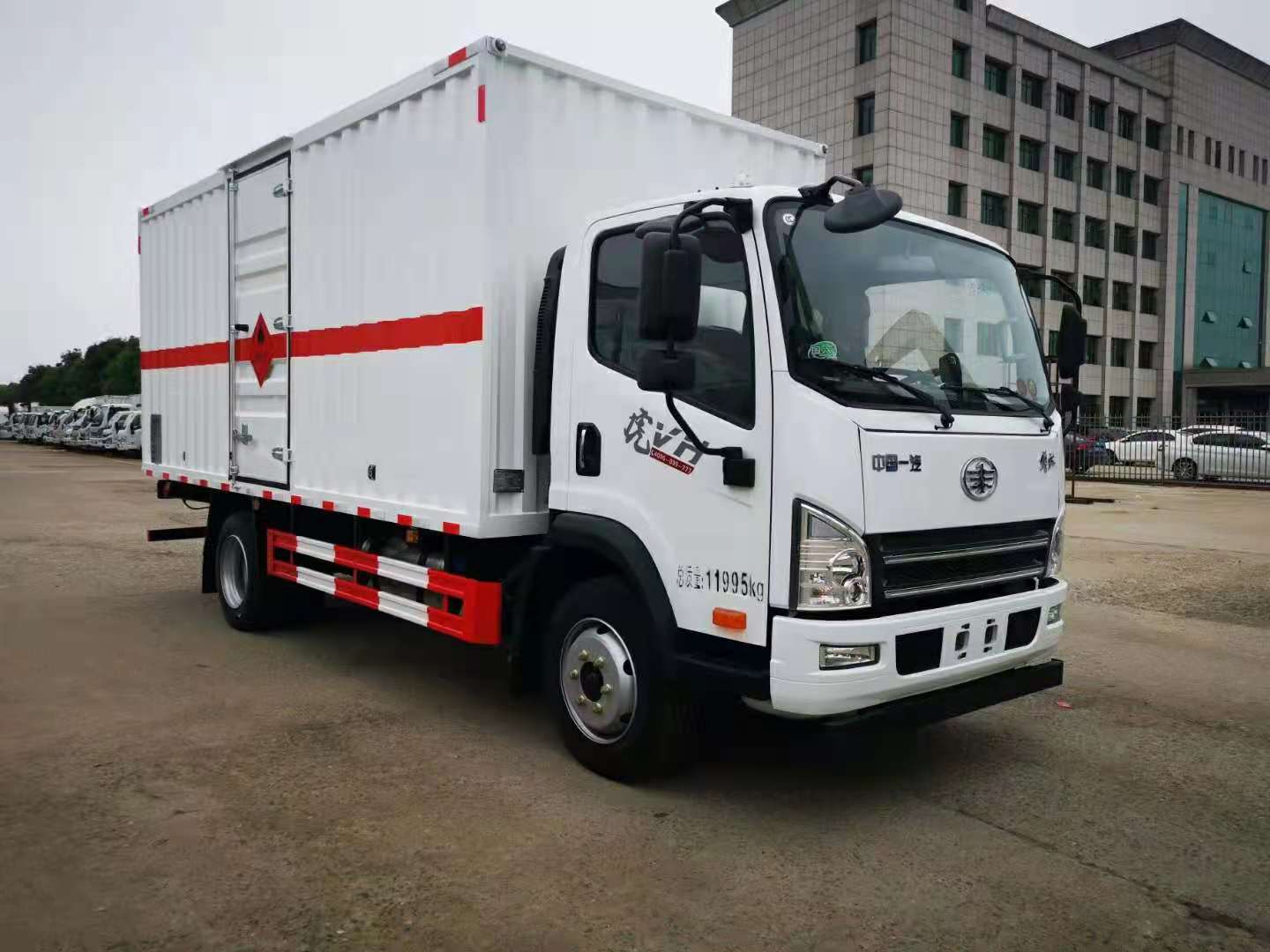解放5米1瓦楞板國六危險品車采用解放危險品車專用底盤,廂體尺寸:5200*2300*2100mm,采用虎VH單排駕駛室,濰柴160P,萬里揚6檔,245/70R19.5 16PR,多功能方向盤,150L鋁合金油箱,板簧3/10+4,定速巡航,空調+電動門窗+中控鎖,儀表EOL,北斗+GPRS行車記錄儀,前下防護,液晶儀表,20L尿素箱,爆胎應急安全裝置,國產LDW+FCW,NFH。