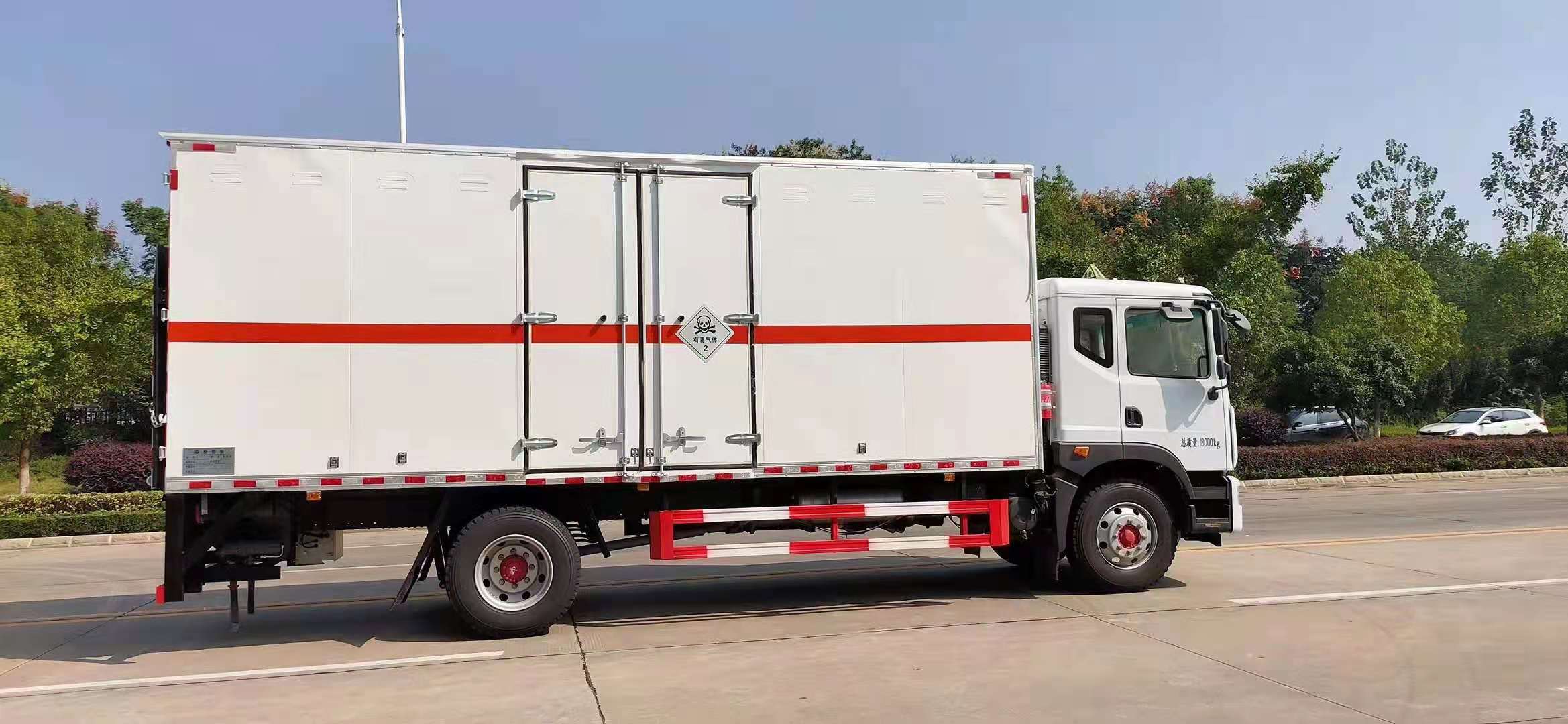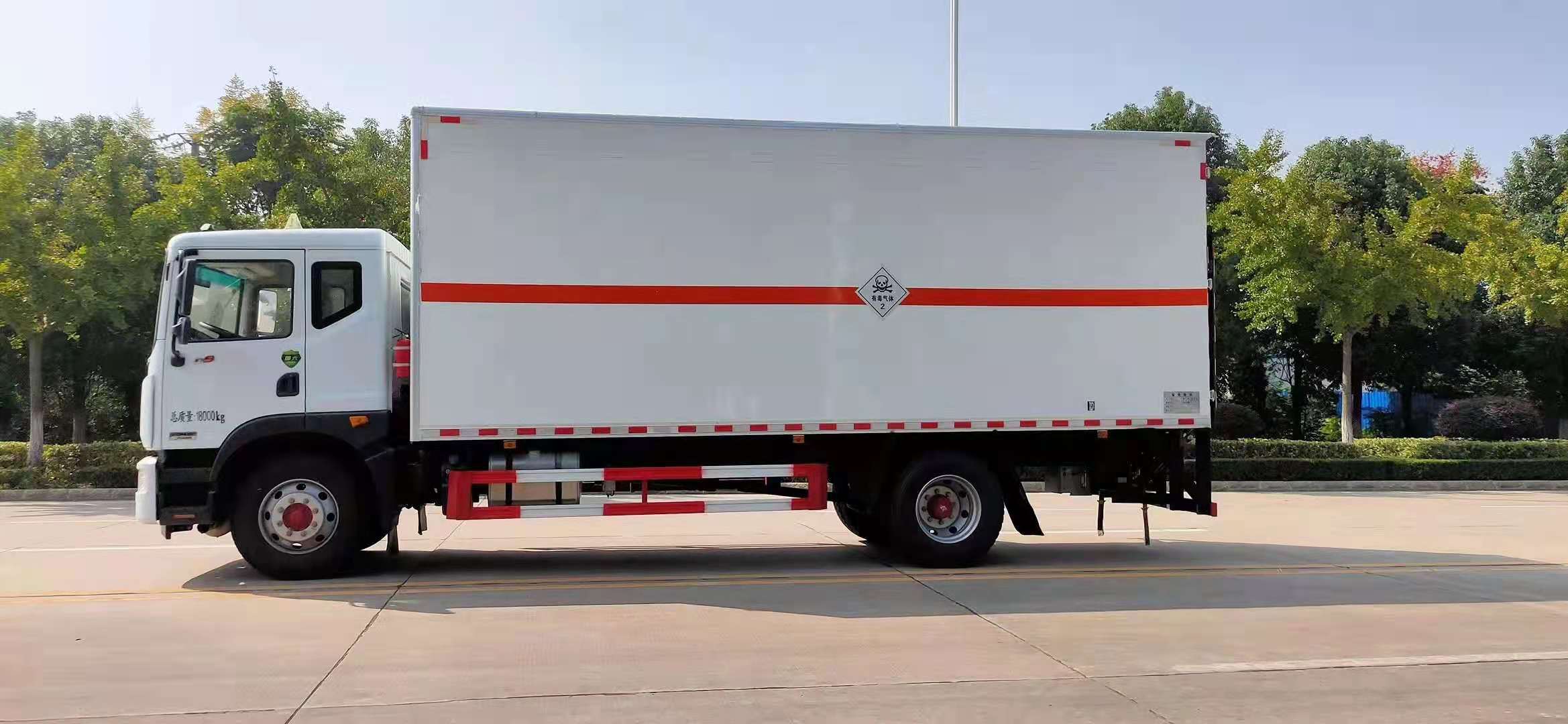 東風(fēng)D9型毒性氣體廂式運(yùn)輸車整車型號(hào):SDS5185XDQEQ6,額定載質(zhì)量:9995kg,正常接單!廂體尺寸:長(zhǎng):8000,7700,6800,6200mm,寬:2460,2420,2360mm,高:2600,2400,2200,1810mm,采用康明斯220P(四缸)發(fā)動(dòng)機(jī),5300mm軸距,也可選六缸B6.2NS6B230,230馬力發(fā)動(dòng)機(jī),法士特小八檔變速箱帶取力器,295/80R22.5輪胎,前后橋4.5噸,10噸德納后橋,250雙層車架,動(dòng)轉(zhuǎn),離合助力,電動(dòng)門窗中空鎖,空調(diào),斷氣剎,排氣制動(dòng),ABS,氣囊座椅/空氣懸架/取力器/防爆胎/前碰撞預(yù)警/車道偏離提醒/胎壓監(jiān)測(cè)。