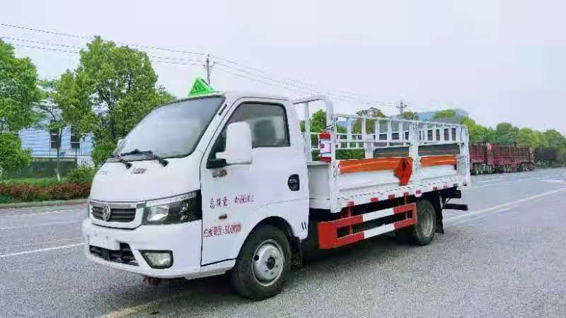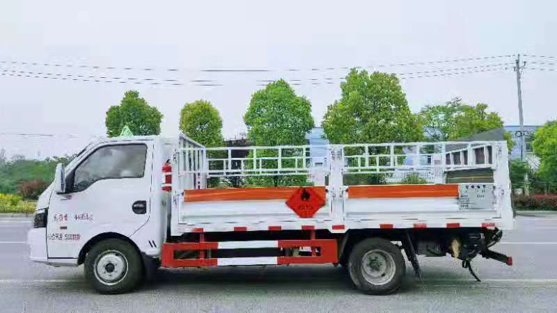 東風途逸3米8國六氣瓶運輸車廂式欄板車結構,外厚度為1.1毫米厚度武鋼冷軋鋼板(或沖壓成瓦楞板,以公告為準),內加強“幾”字型加強梁,車體底板加強處理并做防靜電處理。車體的左側、右側,和后欄板栓鉤結構,可向下打開,方便上下貨物,車體為空曠式車型,大大減少了運輸物品因為狹窄空和強烈碰撞產生氣瓶爆炸的危險性,箱體外觀涂裝白色油漆,在欄板的中間位置粘貼橙色的危化車標帶,并在車體的左、右、后部粘貼“易燃氣體”或“不燃氣體”標識。駕駛室內部配備兩只滅火器,后杠處安裝防追尾事故的緩沖固定塊。此款車輛屬于國家規定的危險品二類危險品運輸車。