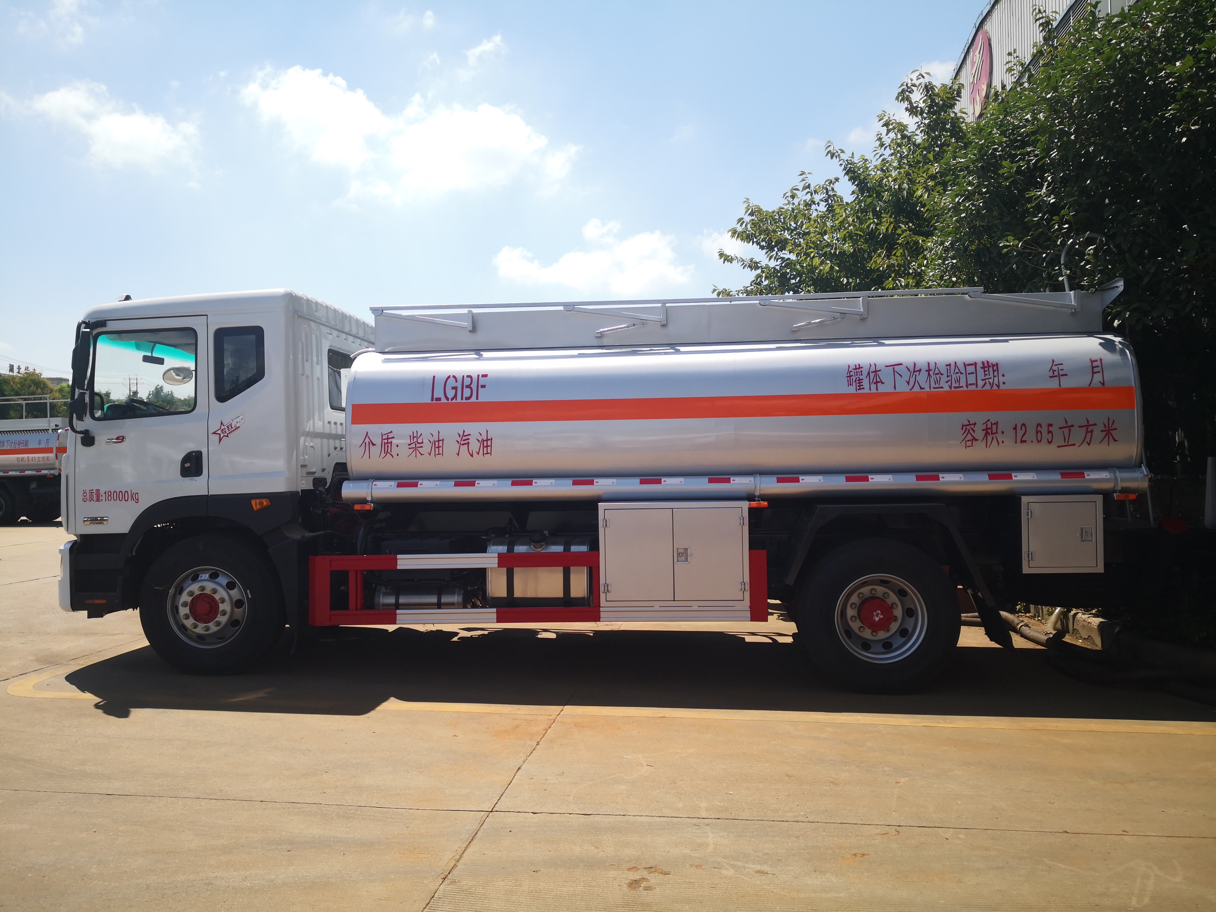 /EBS/ESC/AEBS/單錠行駛記錄儀罐體容積12.65m3,罐體采用Q235B優(yōu)質(zhì)碳鋼板制作。3、一個(gè)鋁合金歐式罐口,一個(gè)鋁合金海底閥(帶海底閥新規(guī)), 80-60泵(右側(cè)3寸出口),一套油氣回收裝置,一套防溢漏報(bào)警裝置,一個(gè)下裝口(裝右側(cè)),15米自動(dòng)回位卷盤,長穩(wěn)大流量加油機(jī),一個(gè)靜電線盤,罐頂升降護(hù)欄,一個(gè)工具箱,一個(gè)防火帽,帶堵蓋。4、油漆:金屬銀灰漆,貼反光線條及3號(hào)危險(xiǎn)品標(biāo)。