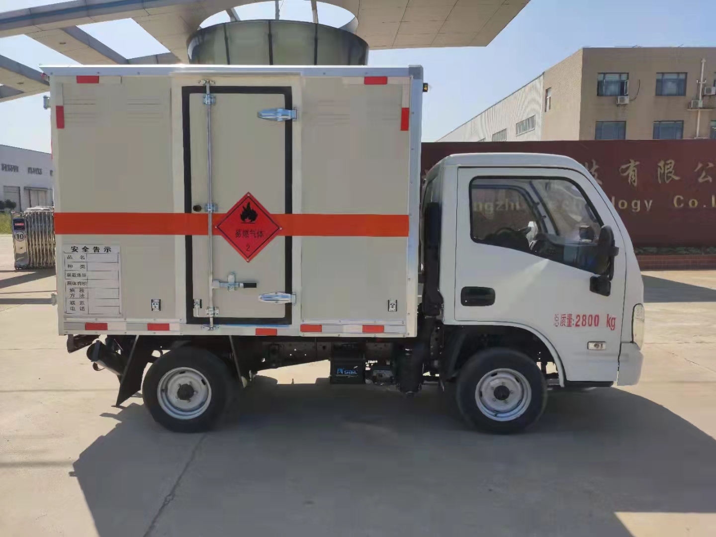 躍進后單胎國六危化廂式車采用S70單排駕駛室,柳機國六113馬力發動機,5檔變速器,175R14后單胎,方向助力,3t后橋,油剎,前盤制動,ABS、限速80,排氣管前置,2500mm/2250mm軸距,帶新規道路偏離預警,防撞碰預警。箱體尺寸可選2.4米或2.8米,該車全部采用的是烤漆板,廂體為雙層金屬結構,外板采用靜電屏蔽冷軋鋼板,中間填充B1級阻燃泡沫,內飾為鋁板。廂體上側安裝防雨通風透氣孔。底板為花紋板,上鋪防靜電膠皮,廂體右側中開單側門。廂內兩側加裝固定貨物臥環,門框帶防盜報警器,頂部帶煙霧報警器。配備隨車工具,2個滅火器,三角頂燈,防靜電拖帶,貼反光標識。