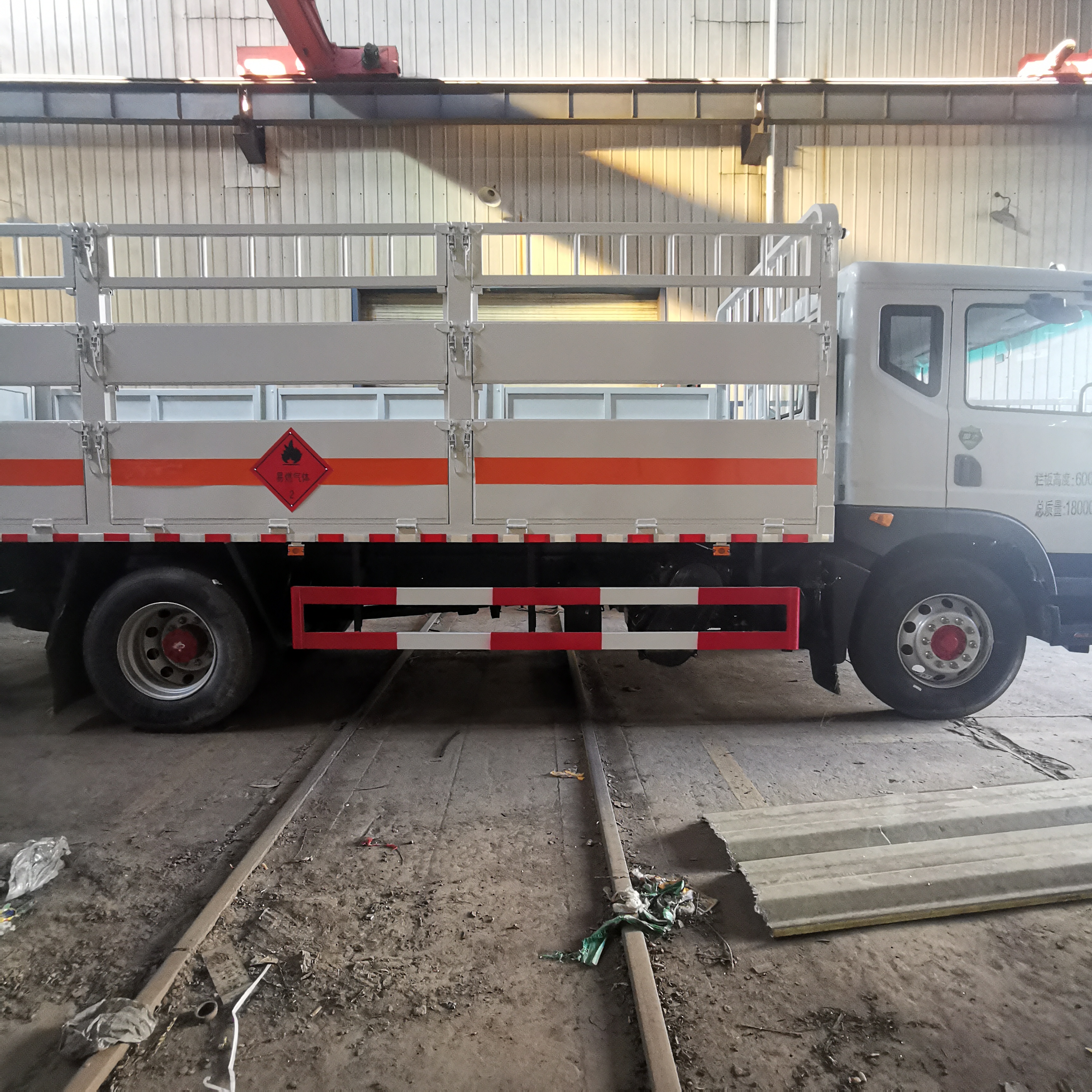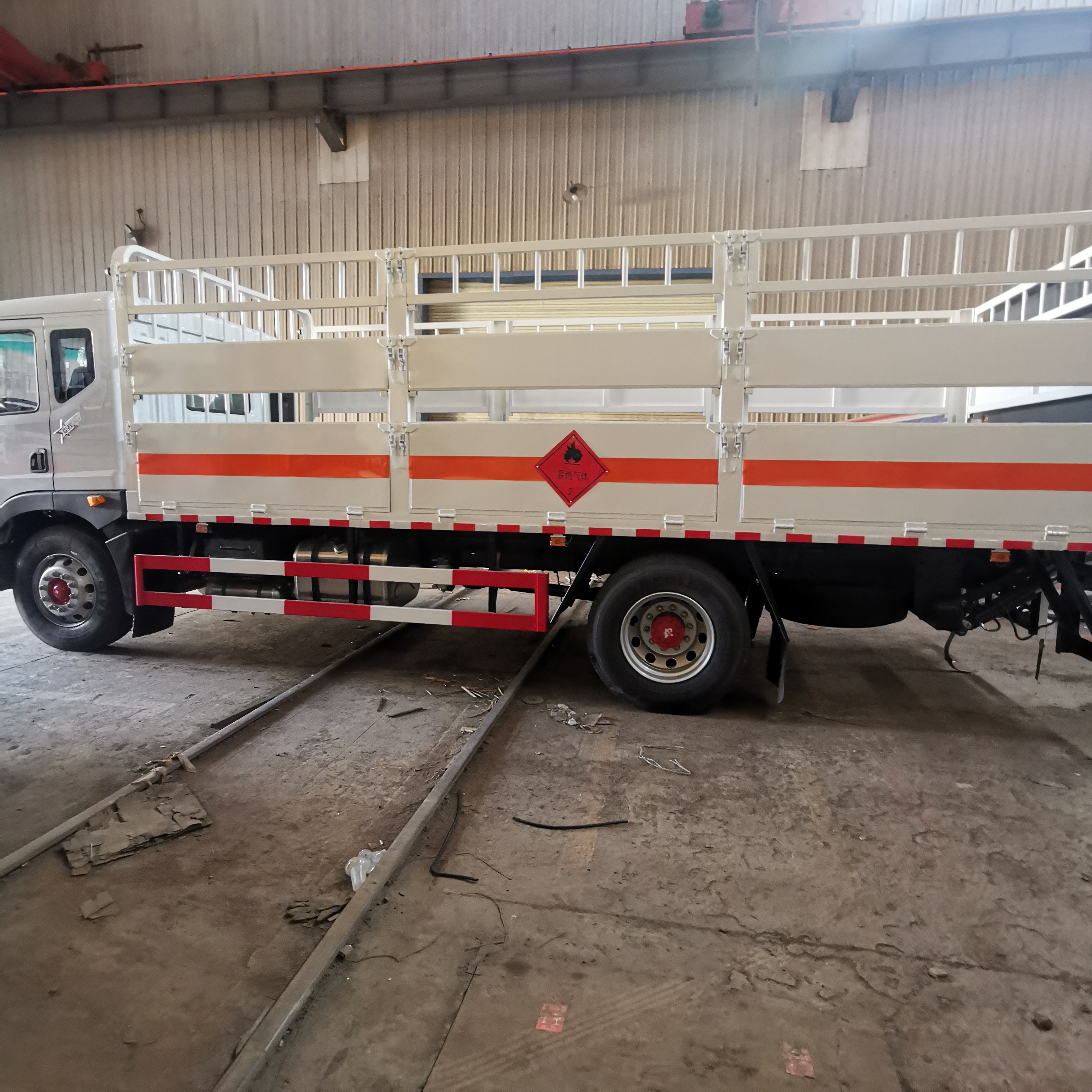 上裝配置: 氣瓶運輸車制作,嚴格按照公告尺寸,高欄式結(jié)構(gòu),貨箱尺寸:6300X2450X600mm,帶靜電帶,二個滅火器,防火罩,整車國標反光標示及警告標志,側(cè)面及后下部防護裝置材料為Q235,三個菱形標識牌,一圈橙色反光帶,一個安全告知標牌。帶接地導(dǎo)靜電膠帶,三角頂燈,其余標配。油漆:駕駛室白色,廂體白色,貼反光帶,反光板,貼危險品級別菱形標志,安全告示牌。 提供整車合格證,底盤合格證,一致性證書,環(huán)保清單,一車一票。