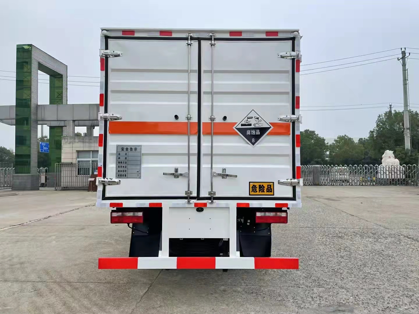 腐蝕品運輸都少不了專用的車輛,該車在危險品車中被劃分為八類危險品。為了選擇更方便,程力專汽特為您定制了解放國六5米1帶雙開雙側門腐蝕性物品廂式運輸車,以下是詳細配置介紹: