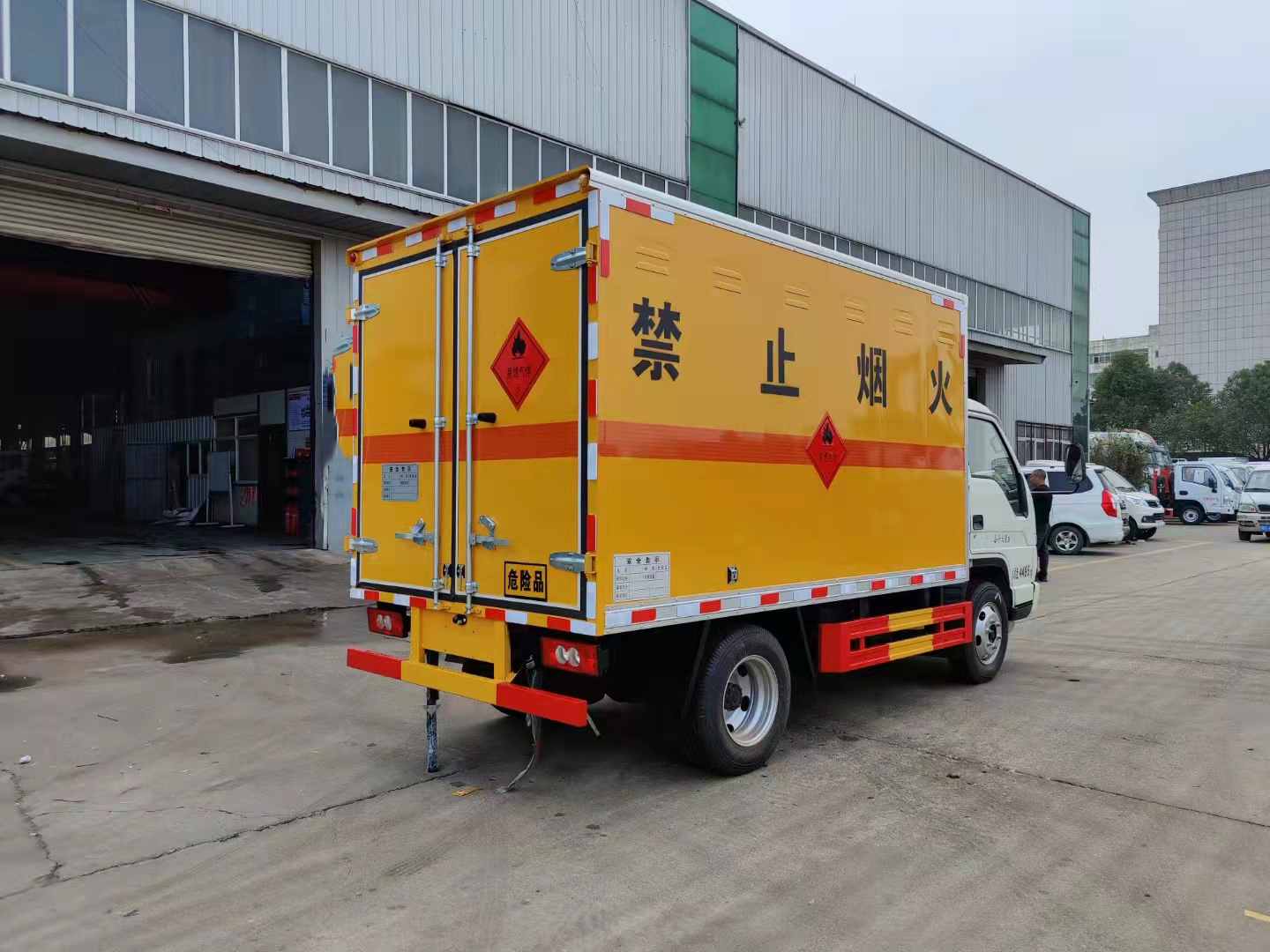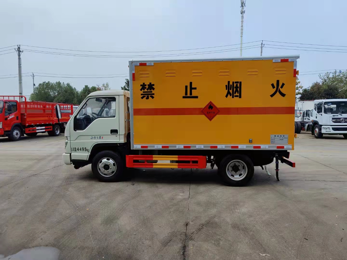 福田時代小卡國六柴油民爆車采用福田小卡危險品車底盤,安徽全柴動力(Q23-115C60)型85KW/115馬力,2.3L排量,6.50R16LT 10PR鋼絲胎,小卡之星1700寬單排可前翻駕駛室,5擋變速箱,動轉,ABS,可調方向盤,電控熄火,巡航,可調大燈,剎車自調臂;箱體尺寸:3300*1880*1750mm,箱體尺寸:2.8米-3.8米多樣選擇。