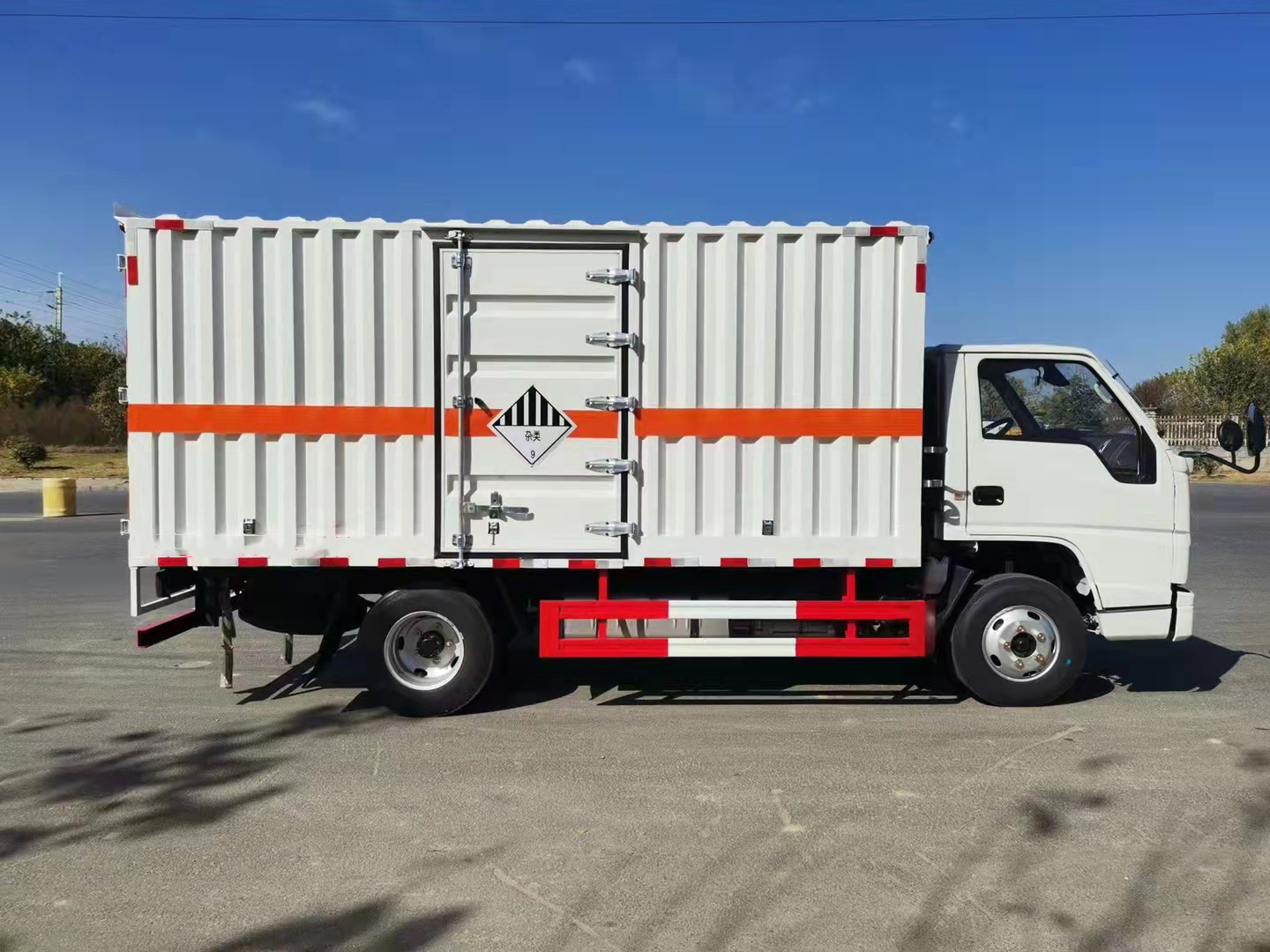 江鈴國(guó)六瓦楞板雜項(xiàng)危險(xiǎn)品車采用江鈴國(guó)六危險(xiǎn)品車底盤,單排駕駛室,原廠危化底盤,國(guó)六發(fā)動(dòng)機(jī),江鈴115馬力,防爆輪胎,空調(diào),ABS,限速80,前盤制動(dòng),排氣管前置,斷氣剎,方向助力. (全新規(guī)底盤)。外板采用冷軋板一次折彎成型,內(nèi)飾為導(dǎo)電性能良好的合金板有透氣孔,復(fù)合加鉚合工藝,內(nèi)襯為矩形管骨架牢靠穩(wěn)定,骨架內(nèi)部填充為透氣防潮阻燃的擠塑板。廂體外部四周鋁合金型材包邊,底板和車廂前下部鋪橡膠皮,后門雙開(kāi),右側(cè)單開(kāi)側(cè)門,內(nèi)部裝固定貨物的臥環(huán),安裝煙霧報(bào)警器、防盜感應(yīng)器。車身附件靜電接地帶、滅火器、防火罩、危險(xiǎn)品三角燈、橙色反光帶、CCC反射器、菱形標(biāo)志牌、危險(xiǎn)品牌、安全告示齊全。