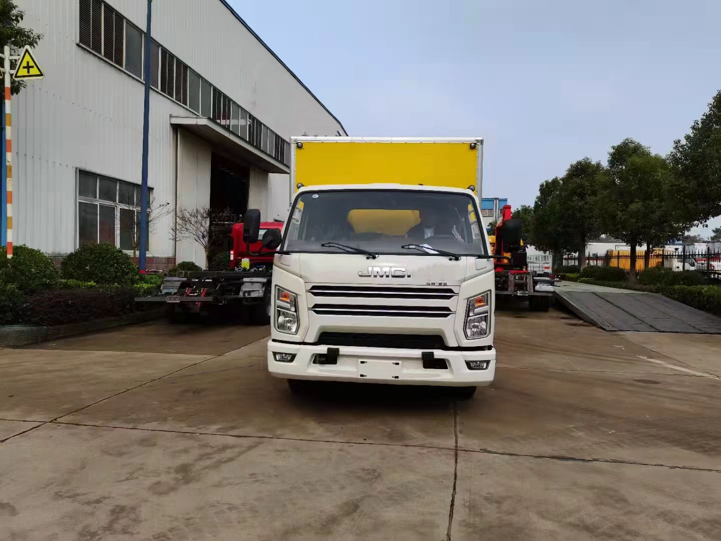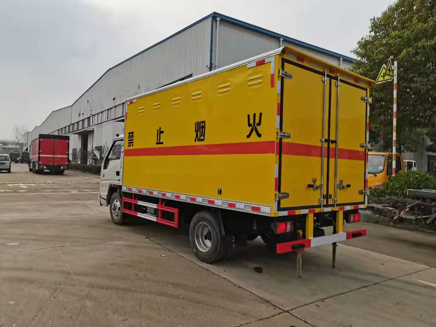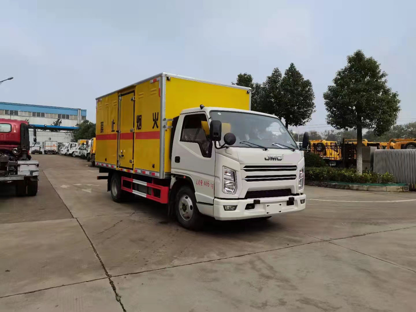 江鈴寬體藍牌爆破運輸車整車型號:JDF5041XQYJ6爆破,國六江鈴順達N600寬體單排駕駛室,底盤型號:JX1042TG26,軸距3360,115馬力發動機,五檔變速箱,7.00鋼絲胎,空調,助力,油剎,中控鎖,電動玻璃,排氣管前置,前盤碟剎,限速,新規帶雙預警。整車尺寸:5995*2250*2850,廂體尺寸:4080*2100*1800。廂體為雙層金屬結構,外板采用靜電屏蔽冷軋鋼板,中間填充B1級阻燃材料,內飾為鋁板。底板為平板,右側中開雙側門,平鋪靜電膠皮,廂體左右兩邊安裝臥環。門框帶防盜報警器,頂部帶煙霧報警器,2個滅火器,帶危險品頂燈,防火帽。車輛嚴格按照公告尺寸和外形制作。總質量:4495   額載:950  整備質量:3350kg.