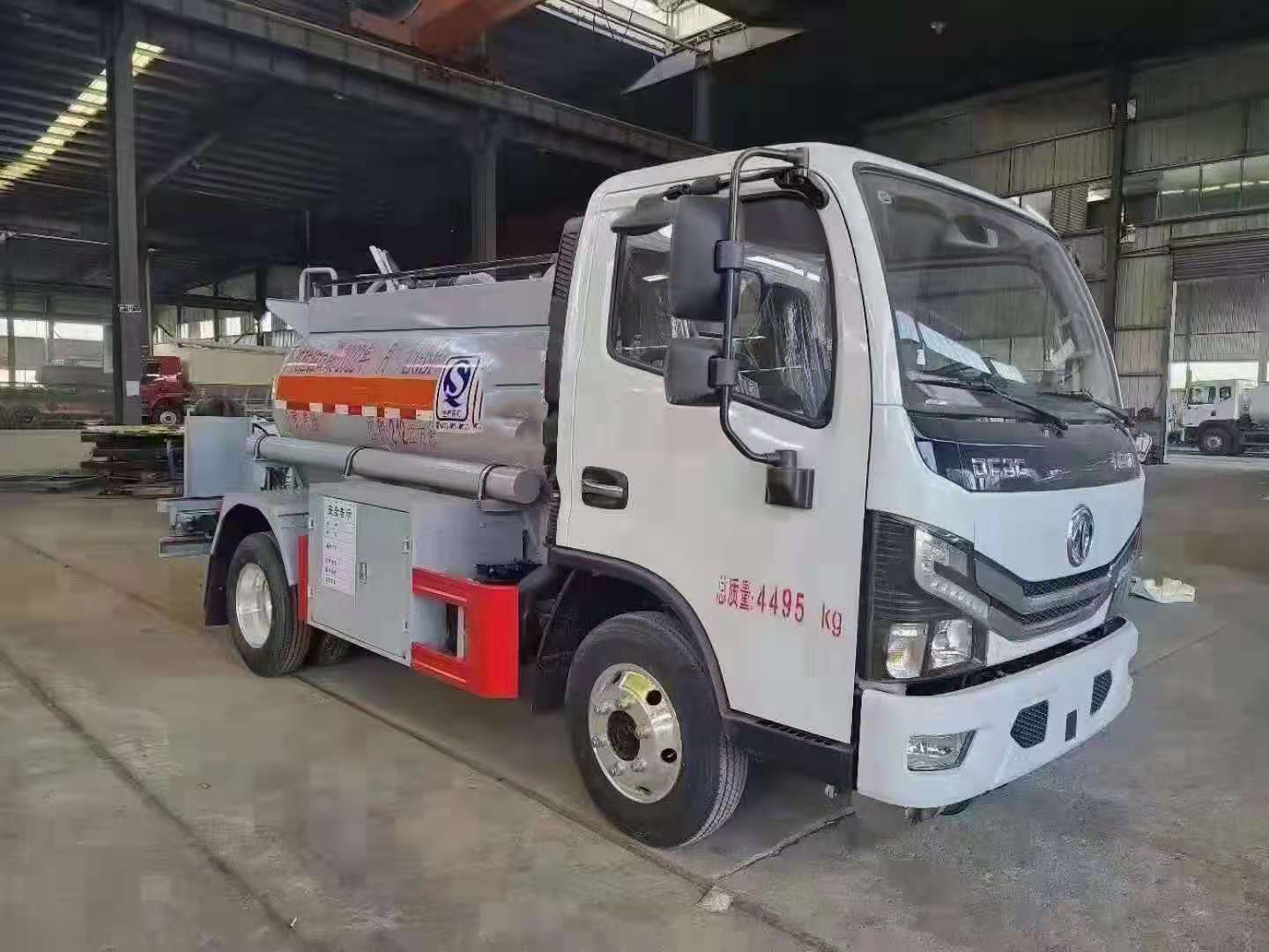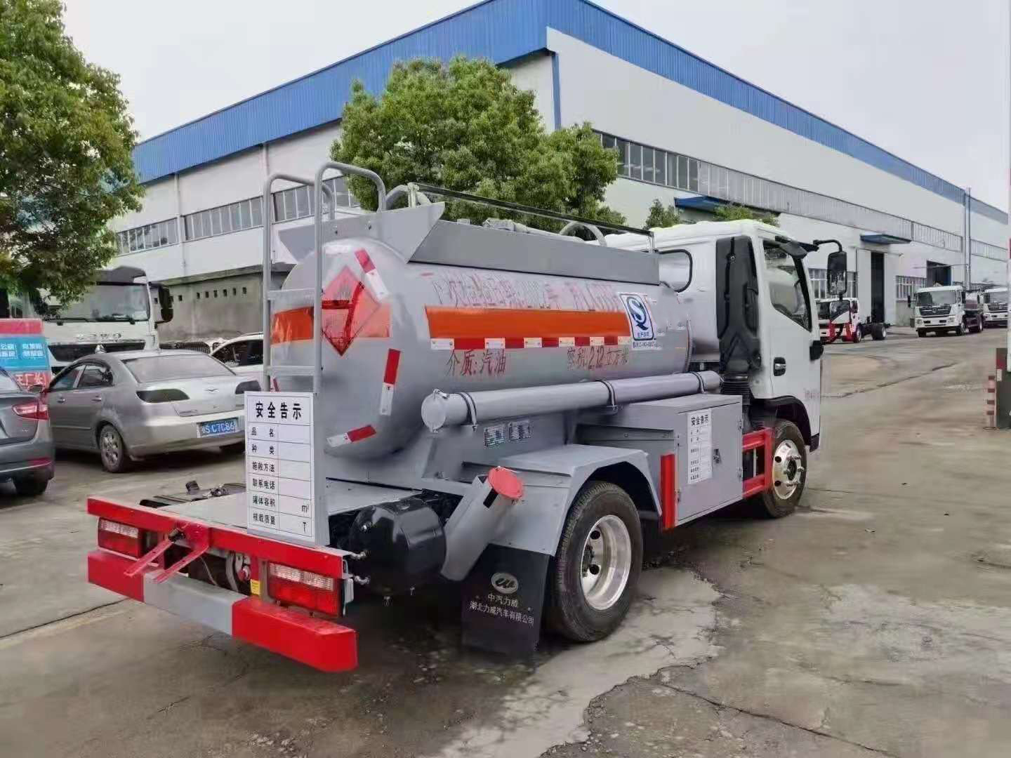東風多利卡藍牌加油車嚴格按照公告尺寸制作罐體2.12立方、罐體厚度大于等于4.2mm、歐標一套:(歐標罐口 、油汽回收、防溢流探桿、靜電插座、下裝油口、海底閥)。折疊護欄、專用油泵(自吸自排)、大流量加油機及15米自動回位卷盤,兩根罐體等長輸油管、兩個滅火器、一個防火帽。其余標配油漆:銀灰、貼反光條、反光帶、安全告示、貼 “易燃” 標。整車具備燃油公告,我方提供車輛上戶所需的國六底盤證、整車合格證、罐檢報告、探傷檢測報告、海底閥證明。