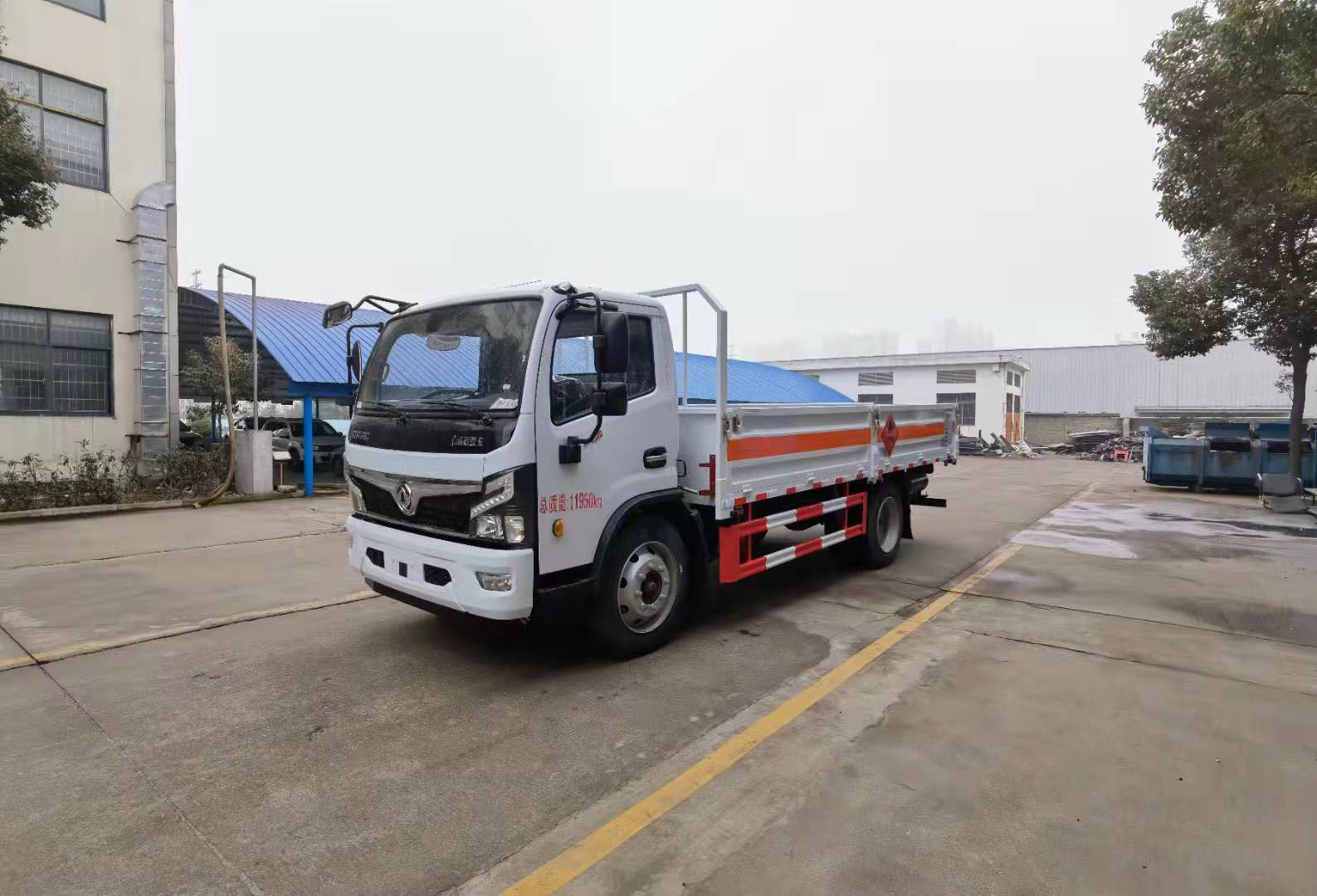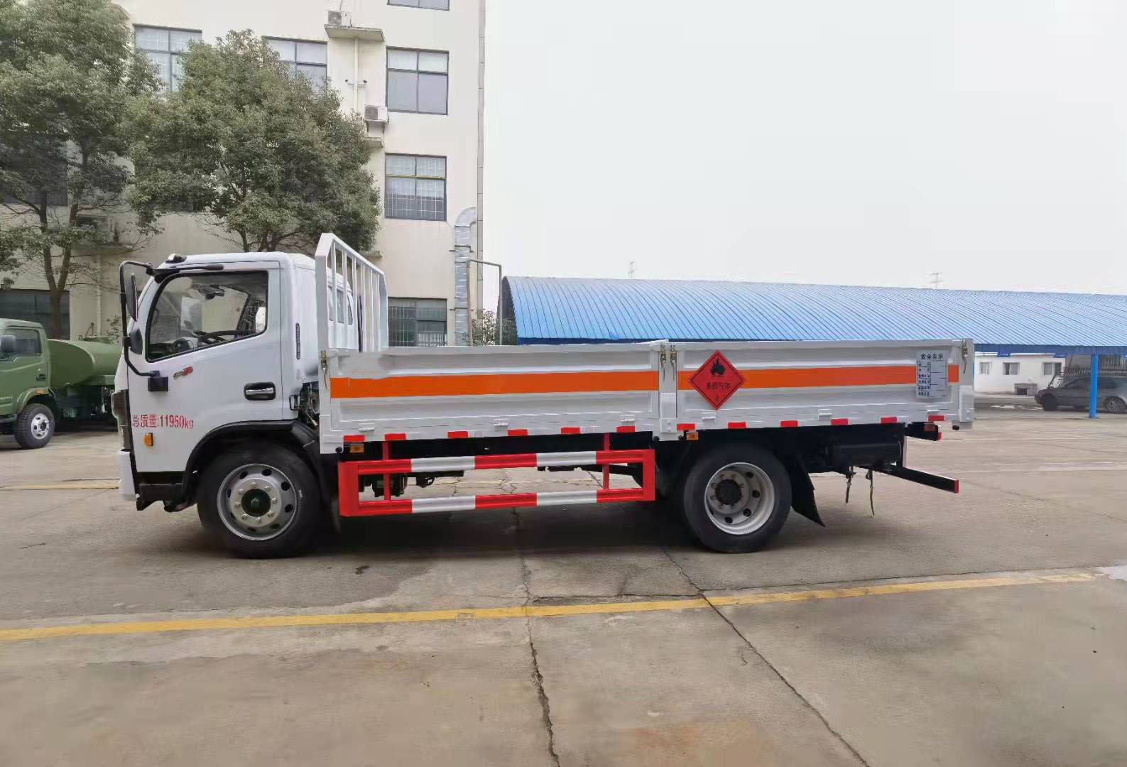 國六東風福瑞卡低欄氣瓶運輸車整車型號:CLQ5120TQP6E,底盤型號:EQ1125SJ8CDCWXP,軸距3800mm,發動機YCY30165-60(玉柴165馬力)/D30TCIF1(云內170馬力),6檔變速箱,245/70R19.5,前后橋2.7噸,后橋5.5噸,192雙層大梁,動轉,離合助力,排氣制動斷氣剎,空調電窗中控鎖,ABS.排氣管前置.電源開關,ECU限速,2021新規雙預警(前向碰撞預警系統FCWS,車道偏離報警系統LDWS)。整車尺寸:7010*2460*2520mm,貨箱尺寸:5200*2300*2200mm。廂體邊板采用1.2mm冷板,底板標配3mm花紋鋼板,底板上方鋪防靜電膠皮,選裝可拆卸高欄,活動立柱,底板做防銹處理。箱體采用雙組份丙稀酸油漆制作,所有合頁均為熱鍍鋅材質。選裝液壓升降尾板。整車國標反光標示及警告標志 (隨車工具,滅火器,三角頂燈,危險品標識,拖地靜電帶),其他按照公告標準制作。