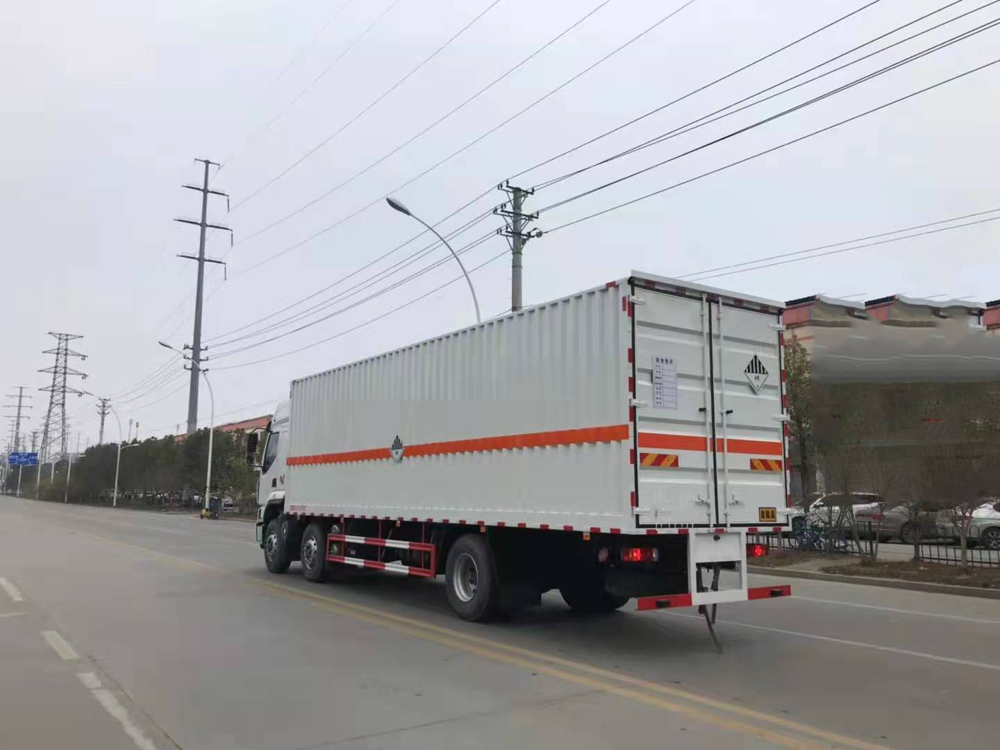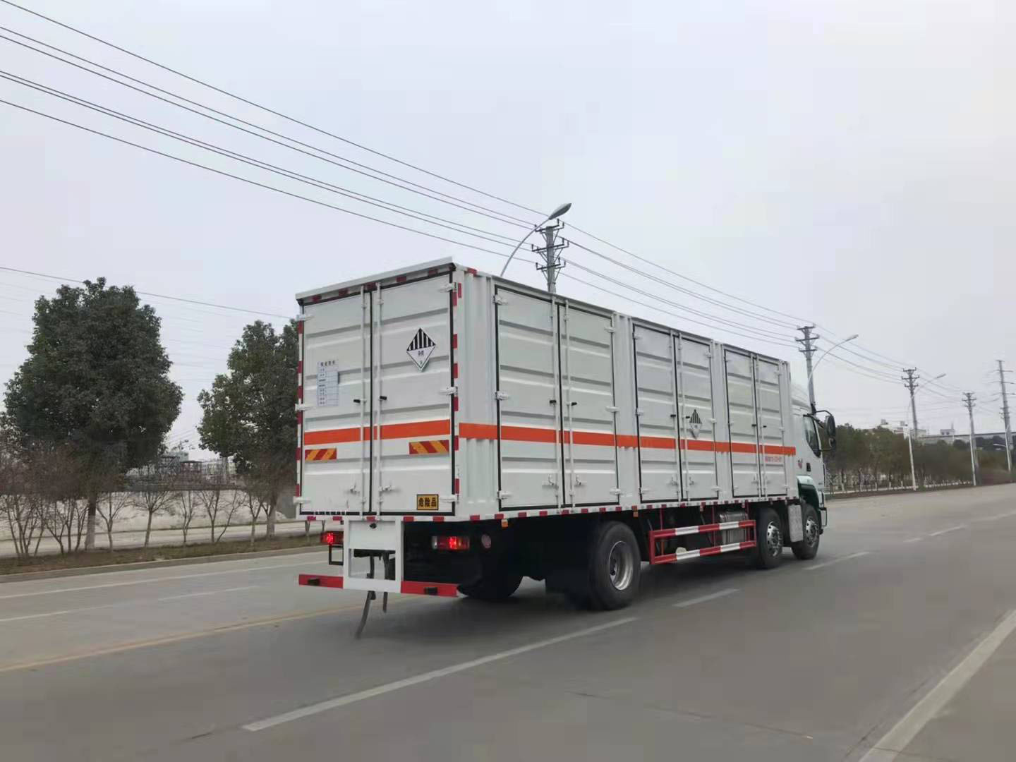 柳汽三軸帶三開側門瓦楞板危險品車