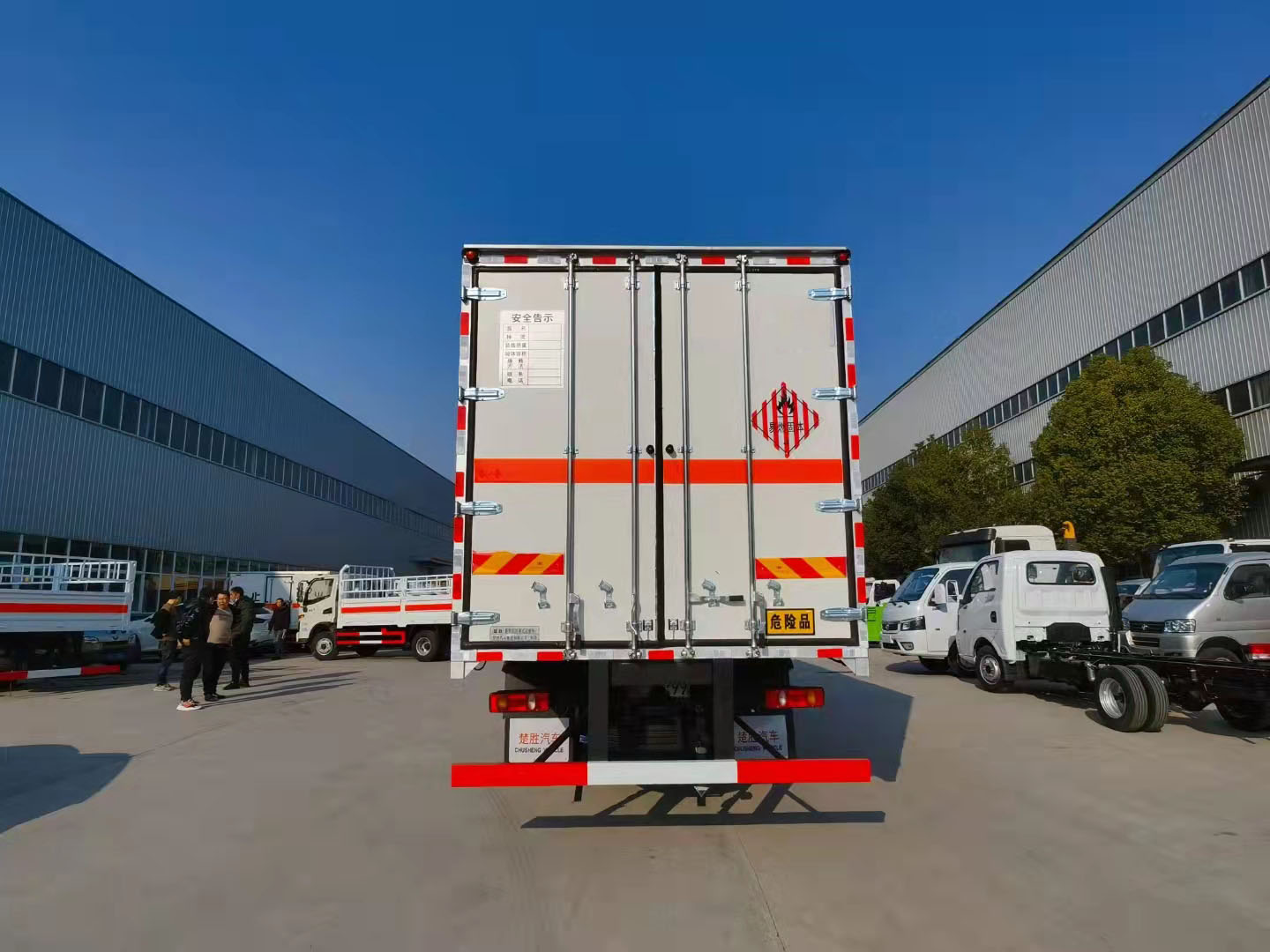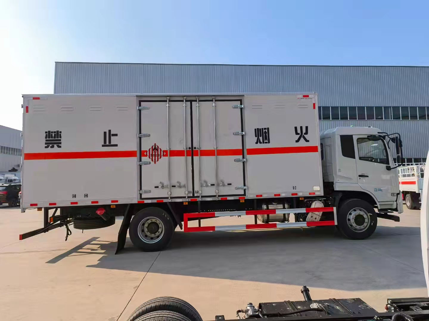 額載10噸廂長6.85米東風天錦易燃固體廂式運輸車雙面夾層結構,外板采用免漆板有一次性沖壓成型的百葉窗,內飾為導電性能良好的鋁板有透氣孔,復合加鉚合工藝,內襯為矩形管骨架牢靠穩定,骨架內部填充為透氣防潮阻燃材料。廂體外部四周鋁合金型材包邊。鋪靜電膠皮,隨車配有靜電帶,滅火器,危險品三角頂燈。整車國標反光標示及警告標志。尾部可選裝液壓升降尾板,卸貨方便。