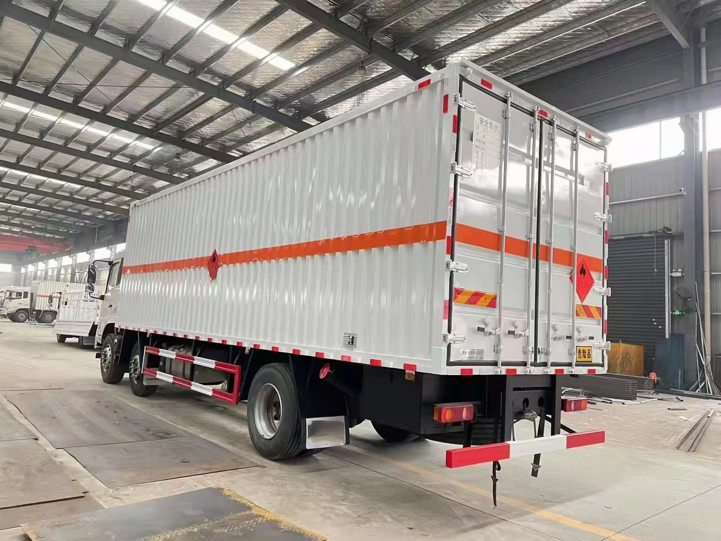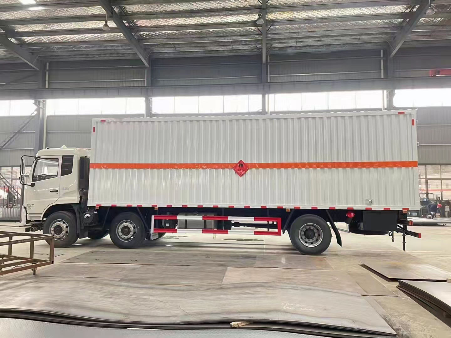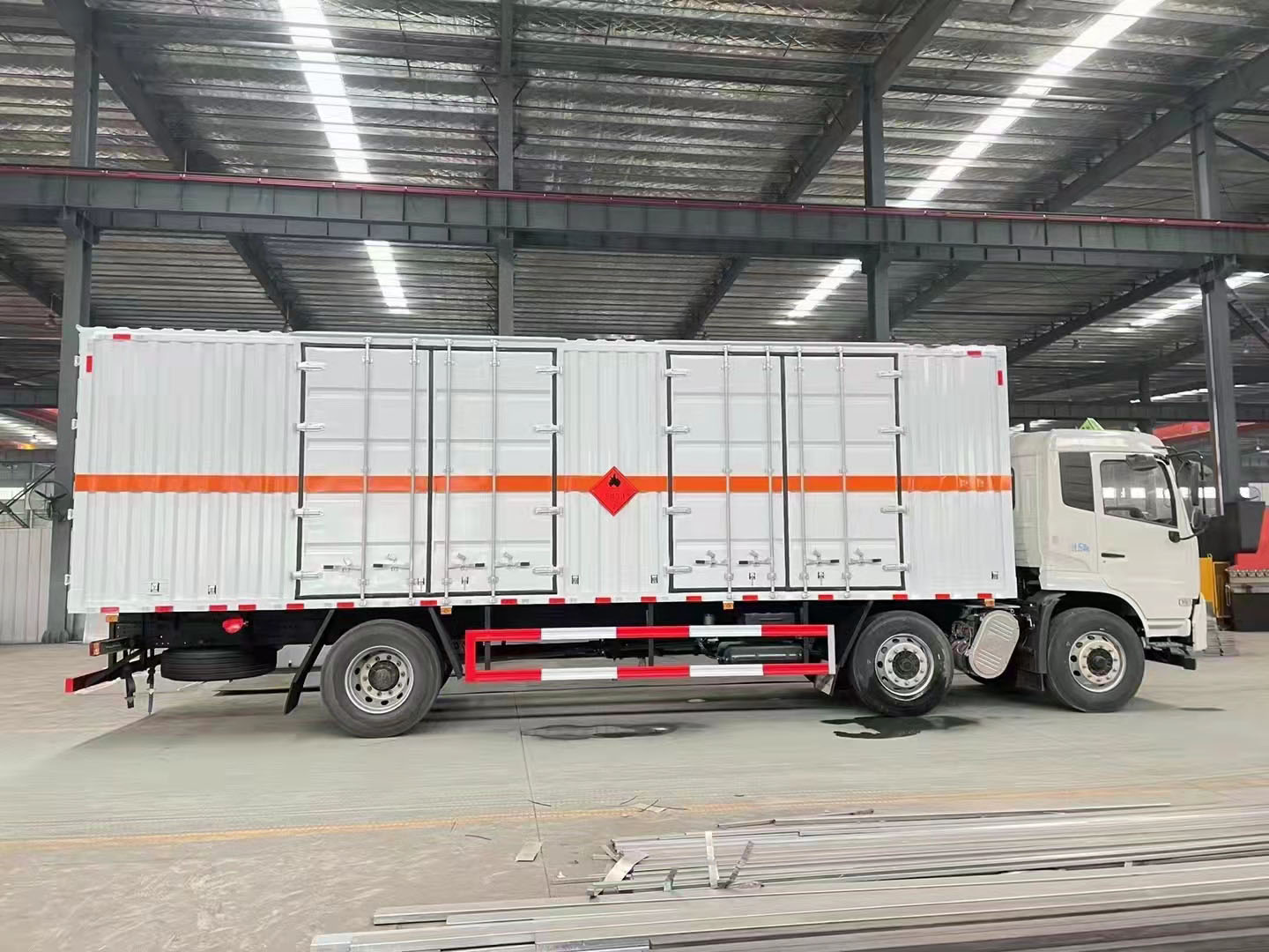危險品車在目前市場上應用非常多,尤其是額載在15噸左右的車型。為了使用方便,程力專汽為您推薦的是東風天錦三軸國六帶雙側門瓦楞板危險品車,以下是詳細配置介紹: