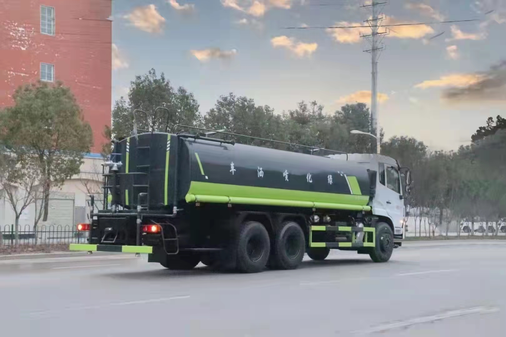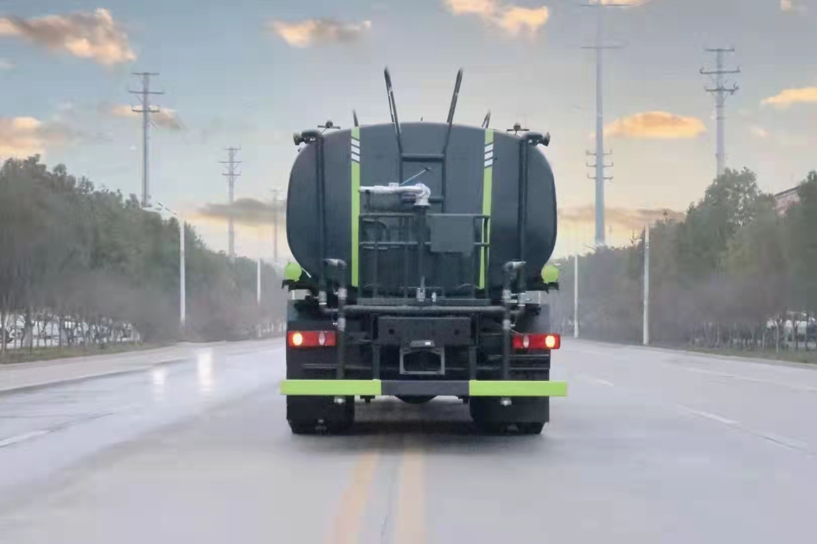 東風D17國六20方灑水車罐體用5MM碳鋼板制作,罐內隔板具有防波作用,以減低汽車行駛時罐體液體的沖擊。整車帶一個專用灑水泵(垂直最大吸程6米),灑水寬度14米,射程28米。多功能灑水車配備2個前沖(噴)(能將路面泥巴、塵土、垃圾沖干凈);2個后灑(能均勻地將水灑在路面,一次灑水寬度14米)、2個側噴(花灑)(能均勻地將路旁綠化帶澆灌)、帶1個后工作平臺,平臺上安裝1個綠化灑水高炮(灑水炮可全方位旋轉,可連續調成直沖狀、大雨、小雨、毛毛雨,霧狀可調節沖洗高大樹木),引水時間<5min,流量90m3/h。帶1個消防接頭,帶1個自流閥,1個過濾裝置、人性化爬梯及側防護欄,安裝灑水音樂喇叭。
