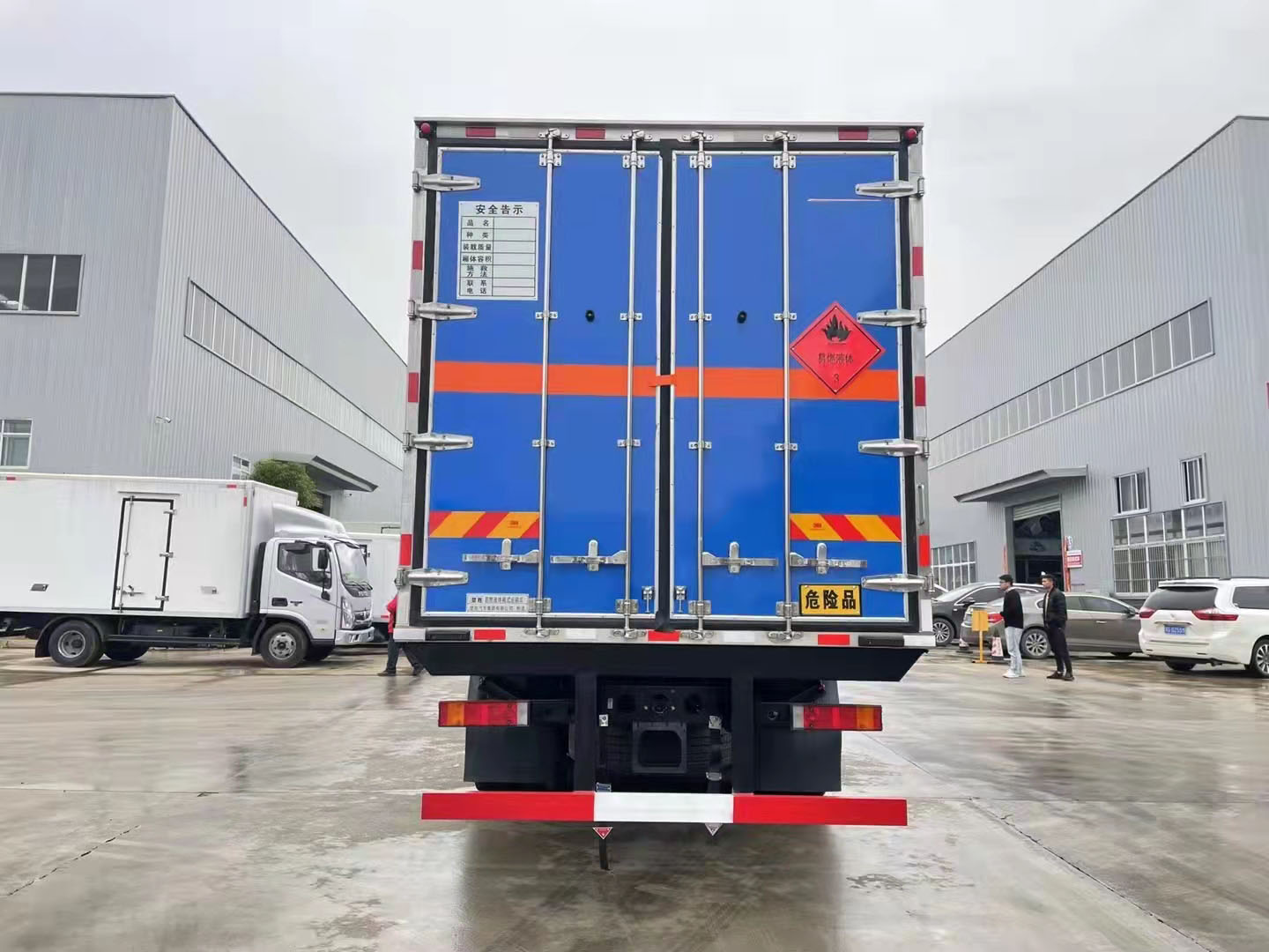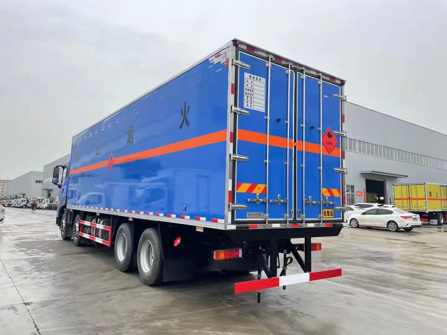 東風天龍KL整車藍色前四后八危險品車箱體帶側門,箱體采用的是復合板箱體,帶防阻燃材料,裝載容積大,該車定制的顏色可多選,定制您專用的顏色,讓您的車輛顏色更炫目。