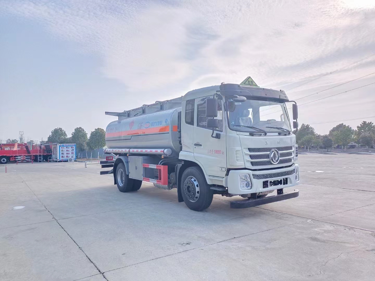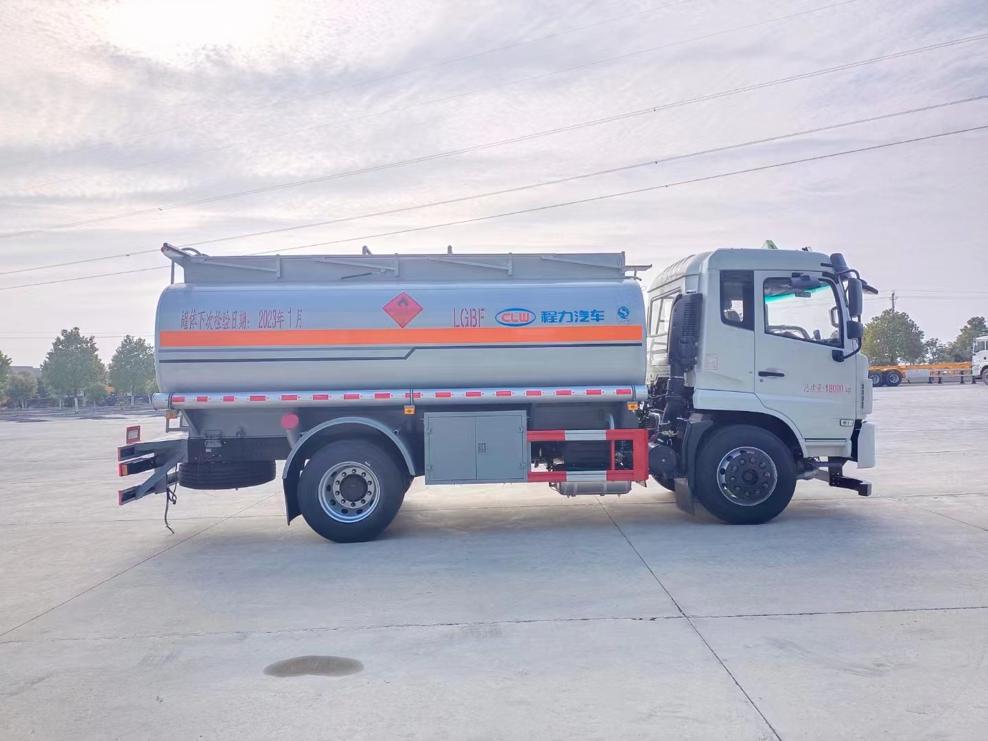 東風專底國六加油車整車型號:cl5180gyye6   玉柴200馬力發動機,碳鋼罐,全套歐標帶泵,泵進泵出。標配空調,氣囊座椅,電動玻璃,LED燈,中控鎖,新法規車型,剎車道偏離,放碰撞系統,ESC,符合新規。大量現車,廠家直銷,包上戶,可分期。嚴格按照公告尺寸制作,采用優質碳鋼板制作,單倉,一個歐標罐口,一個海底閥,一個下裝油口,一個油氣回收,一個防溢流探桿及探桿座,帶油車專用自吸自排單泵,可泵進泵出,下裝及泵進泵出裝在右側(副駕),大流量加油機及15米自動回位卷盤,配一個防火帽,兩根直徑兩寸半長的輸油管,兩個滅火器,其余標配。油漆:銀粉色,貼反光條,反光帶,安全告示,三個“易燃液體”字。