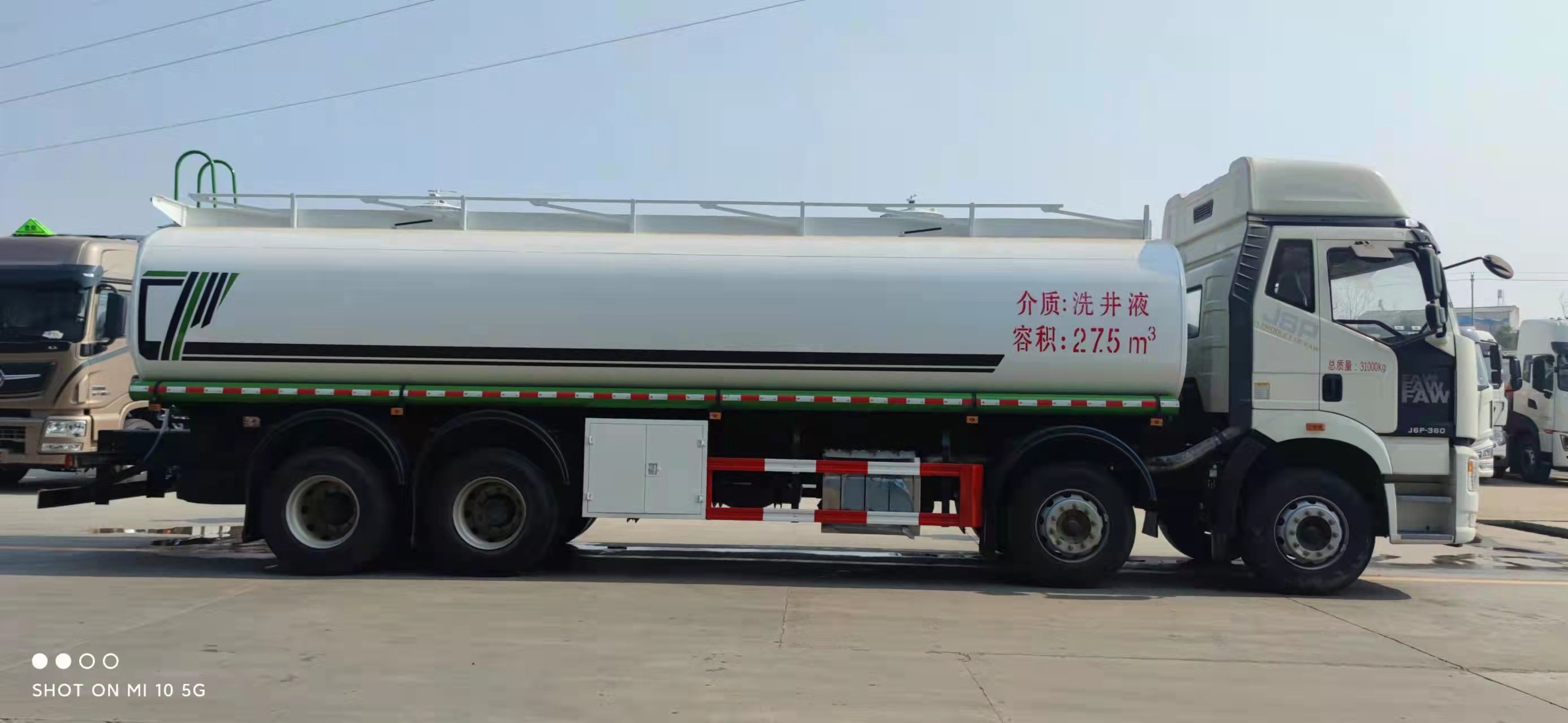 解放J6前四后八國六供液車上裝配置:罐體有效容積:30.5方,罐體采用Q235B材質板,罐體5mm,封頭5mm厚,、隔板4mm厚,帶2個罐口,帶80-60泵,可泵進泵出,4寸管道,3寸出口,其他按廠標,提供底盤證,整車證,上戶發票。根據客戶需求不同,為客戶定制的車型不一樣,歡迎各新老客戶來電咨詢訂購!