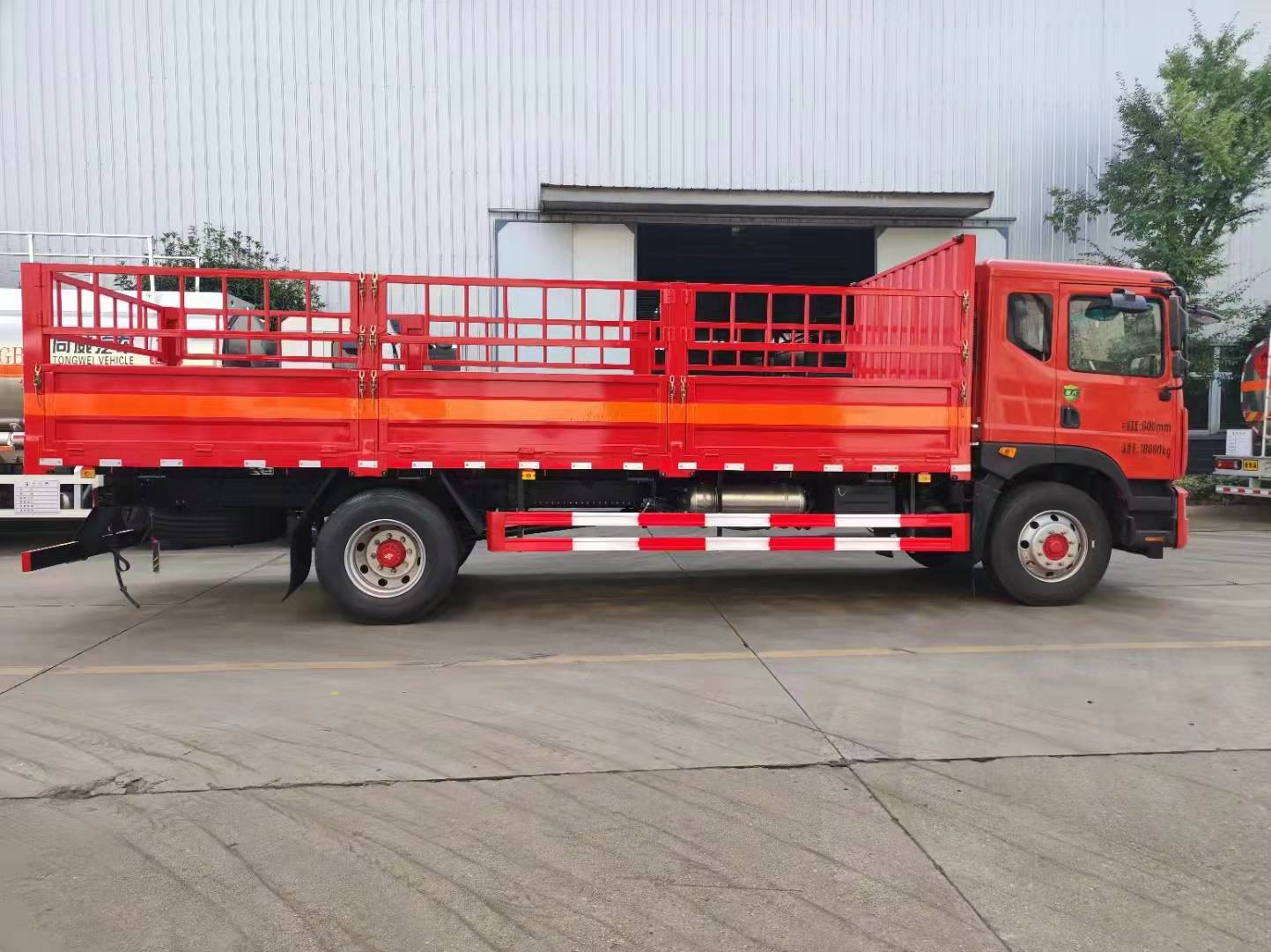 拉液化氣瓶、氧氣瓶、乙炔甲烷等物品都屬于二類危險品,運輸該類物品不超重,客戶都想要額載大一點的車型。東風D9國六高欄氣瓶車少不了,該車采用的是2315排半駕駛室,250雙層大梁,法士特(8JS95)八檔變速箱,295/80R22.5真空胎,德納4.5噸盤式前橋。10噸大承載后橋,原廠空調,電動門窗中空鎖,動轉,離合助力,斷氣剎,排氣制動,ABS,空氣懸架,帶取力器,防爆胎/前碰撞預警/車道偏離提醒/胎壓監測/EBS/ESC/AEBS。為了方便客戶選擇,該車可定制4缸機和6缸發動機,根據客戶路況不同,所選擇也有所不同。