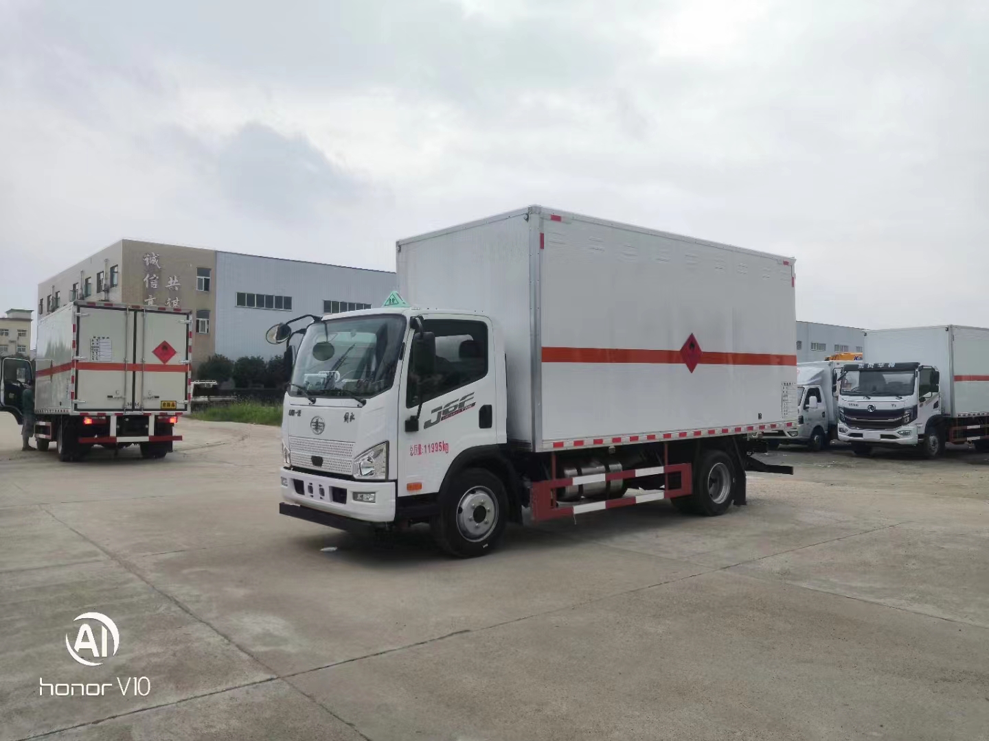 解放5.15米J6F危險(xiǎn)品廂式運(yùn)輸車公告齊全,貨箱尺寸:5150 *2300*2300mm,車輛外部尺寸(mm):7040 *2380,2445 *3510。額載7.14噸,外板采用免漆鋼板帶一次性沖壓成型的百葉窗,內(nèi)飾為導(dǎo)電性能良好的鋁板帶透氣孔,內(nèi)襯為矩形管骨架牢靠穩(wěn)定,骨架內(nèi)部填充為透氣防潮阻燃的材料,廂體外部四周鋁合金型材包邊,底板和車廂前下部鋪橡膠皮,后門雙開,右側(cè)選裝側(cè)開門,內(nèi)部安裝固定貨物的臥環(huán)或腰欄,安裝煙霧報(bào)警器、防盜感應(yīng)器。車身附件靜電接地帶、滅火器、防火罩、危險(xiǎn)品三角燈、橙色反光帶、紅白相間反光板、菱形標(biāo)志牌、危險(xiǎn)品牌、安全告示。(按公告選裝瓦楞板,液壓尾板)。