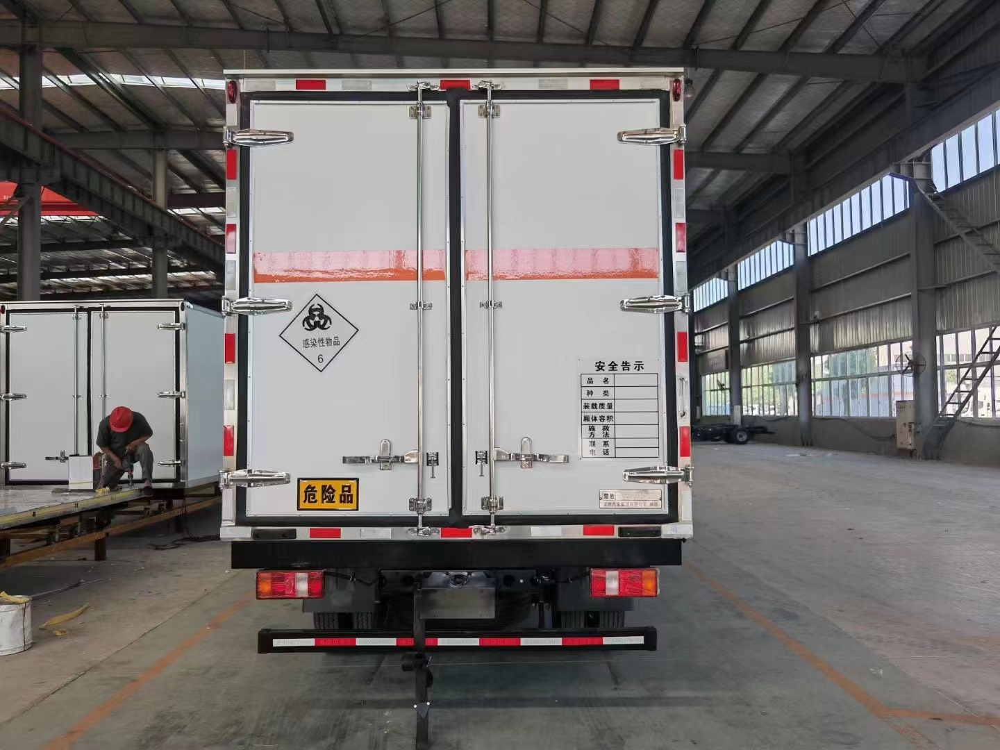 重汽豪沃國六藍牌醫療廢物轉運車醫廢廂體配置:廂體材質采用外玻璃鋼,內全防腐不銹鋼,噴霧系統,紫外線消毒燈,裝防腐不銹鋼污水收集箱,后雙開門,廂體右側靠前選裝開側門,門邊條采用迷宮式橡膠密封條,底部污水槽,污水箱,凈(藥)水箱,負壓機(選配),鋁合金型材包邊,不銹鋼包角,不銹鋼門鎖,不銹鋼門框及合頁。后門加門中門(選配)。