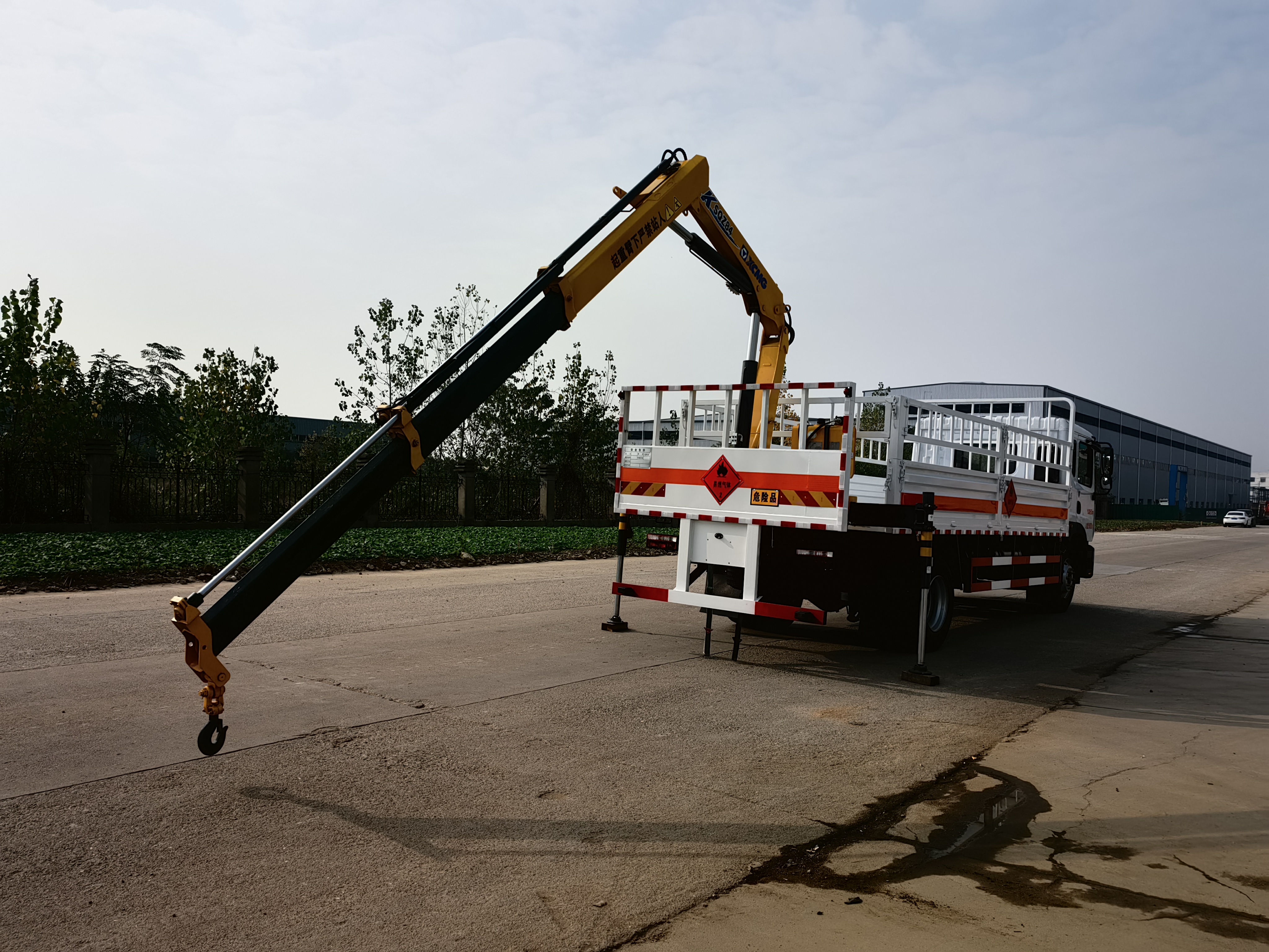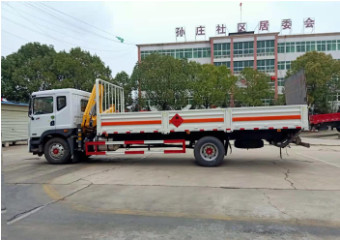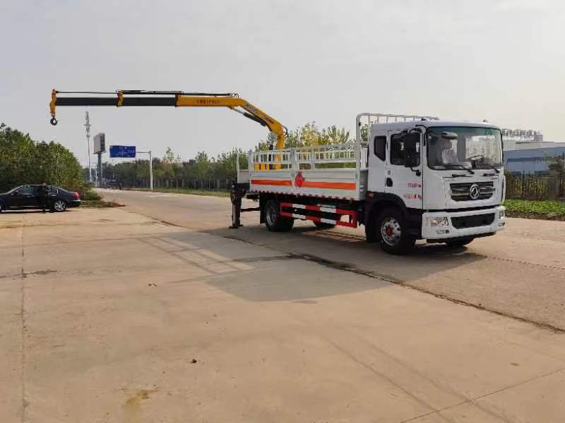 東風D9國六帶吊氣瓶車吊臂工作半徑7.3米時起吊900公斤,吊臂工作半徑5.8米時起吊1200公斤,吊臂工作半徑4.15米時起吊1800公斤,吊臂工作半徑2.1米時起吊4噸。底部鋪靜電膠皮。帶危險品三角燈防火罩。有環保,有燃油,不超重。可以選擇前置和后置吊機兩種款式。