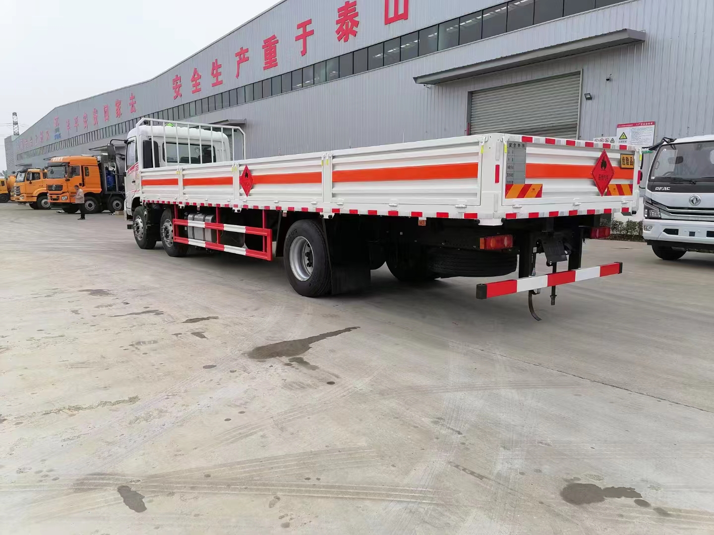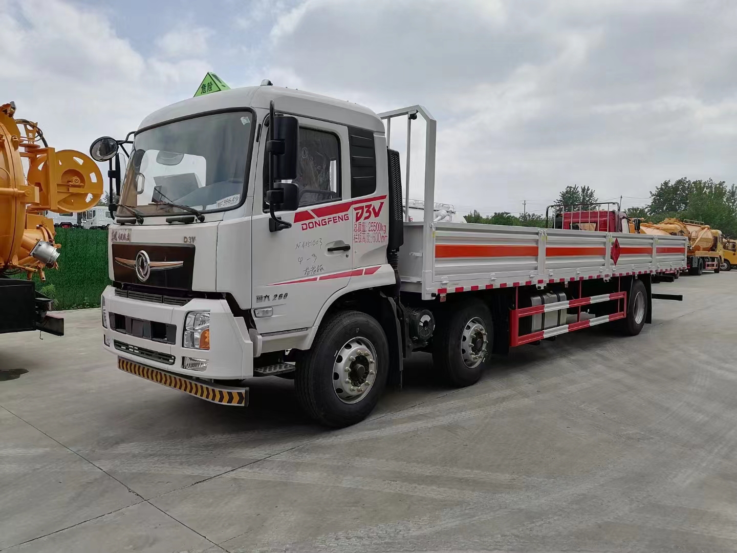 東風D3V國六氣瓶車外板采用瓦楞板帶高欄,欄桿可拆卸式,有靜電帶、滅火器、防火罩。整車國標反光標示及警告標志。也可選擇低欄貨箱。可加裝液壓尾板,整車不超重。該車支持定制,可分期付款。