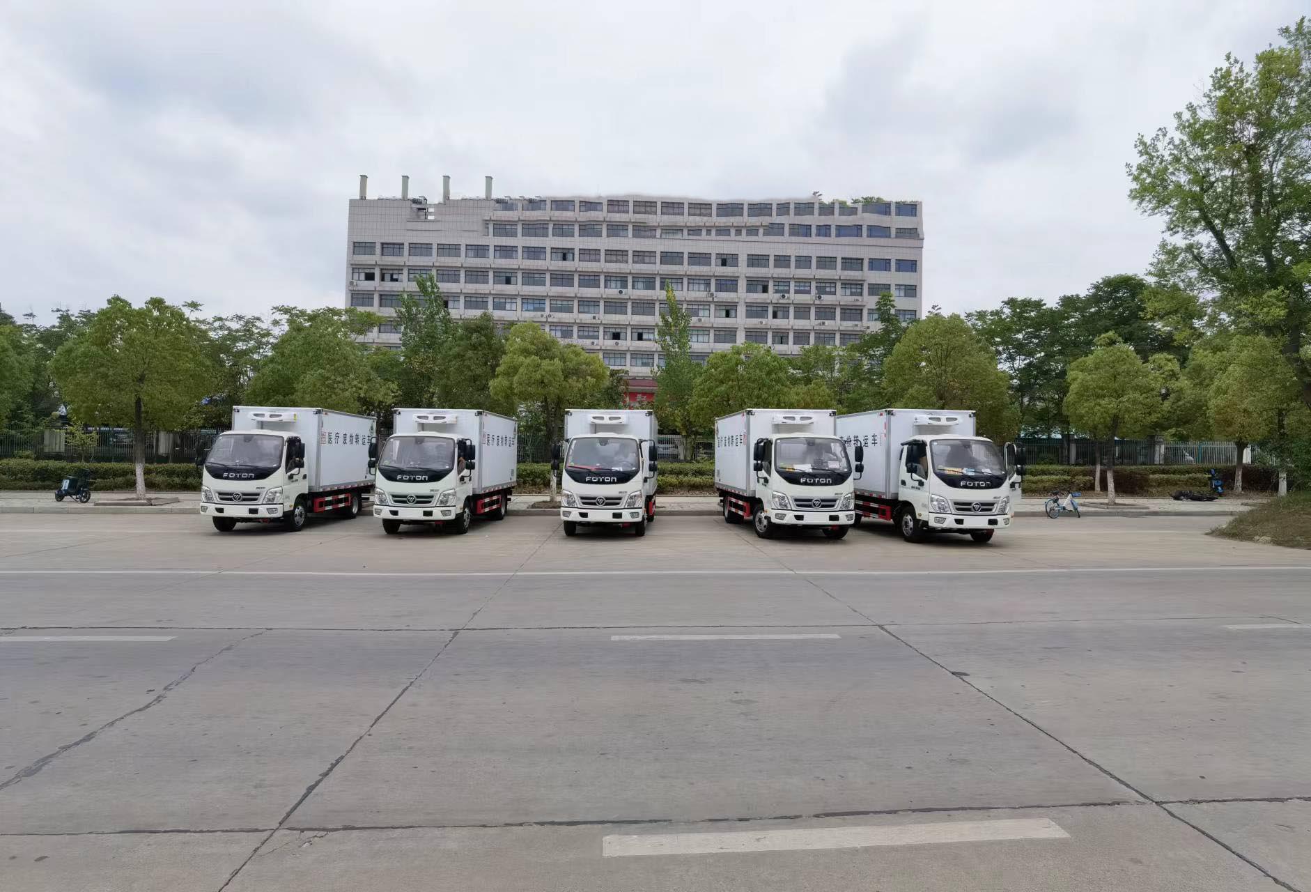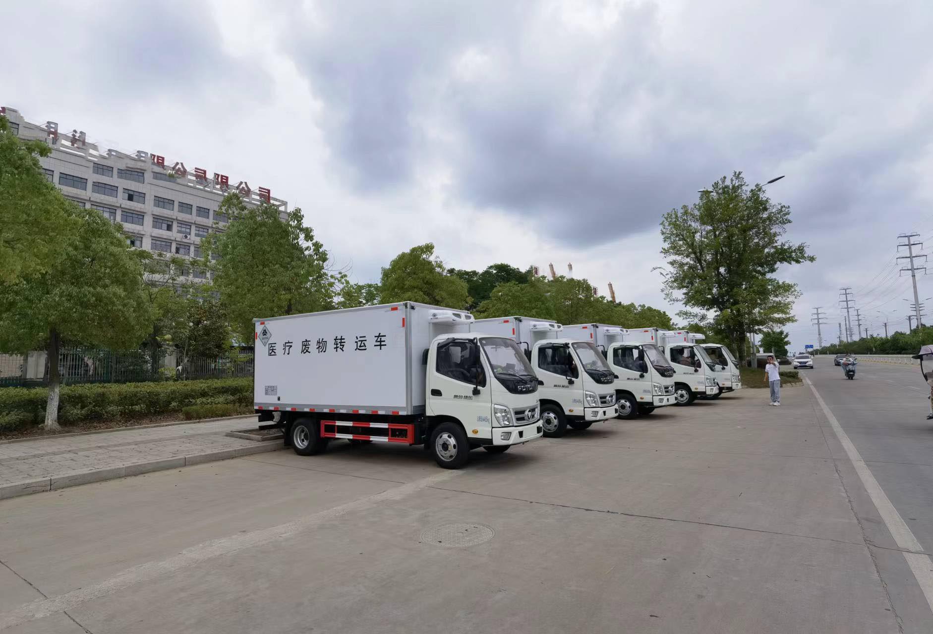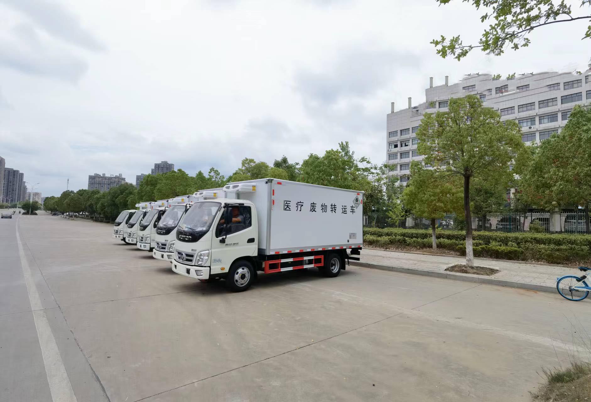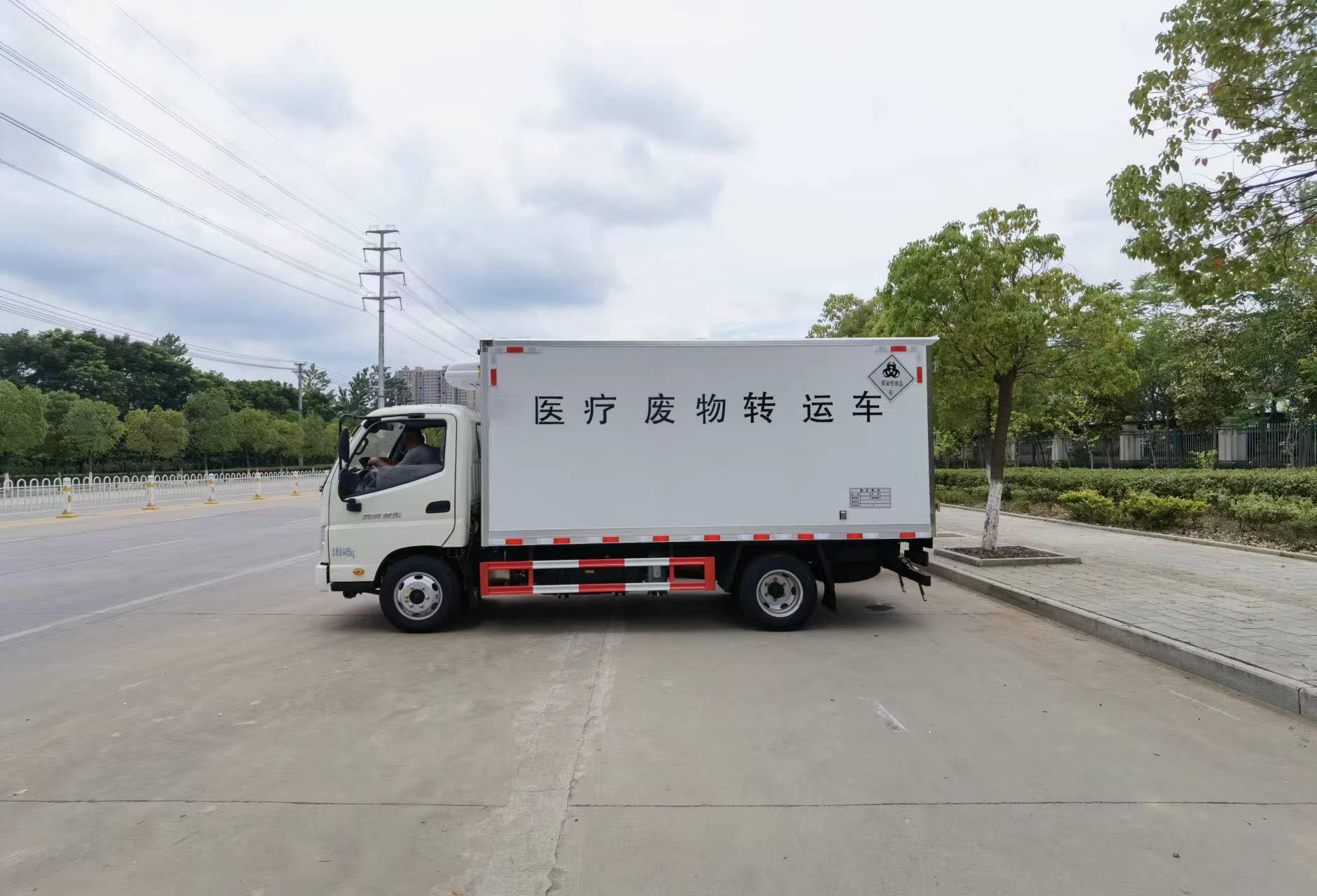 福田藍牌醫療廢物轉運車能進下室,方便轉運貨物,整車不超重,該車支持定制可分期付款!