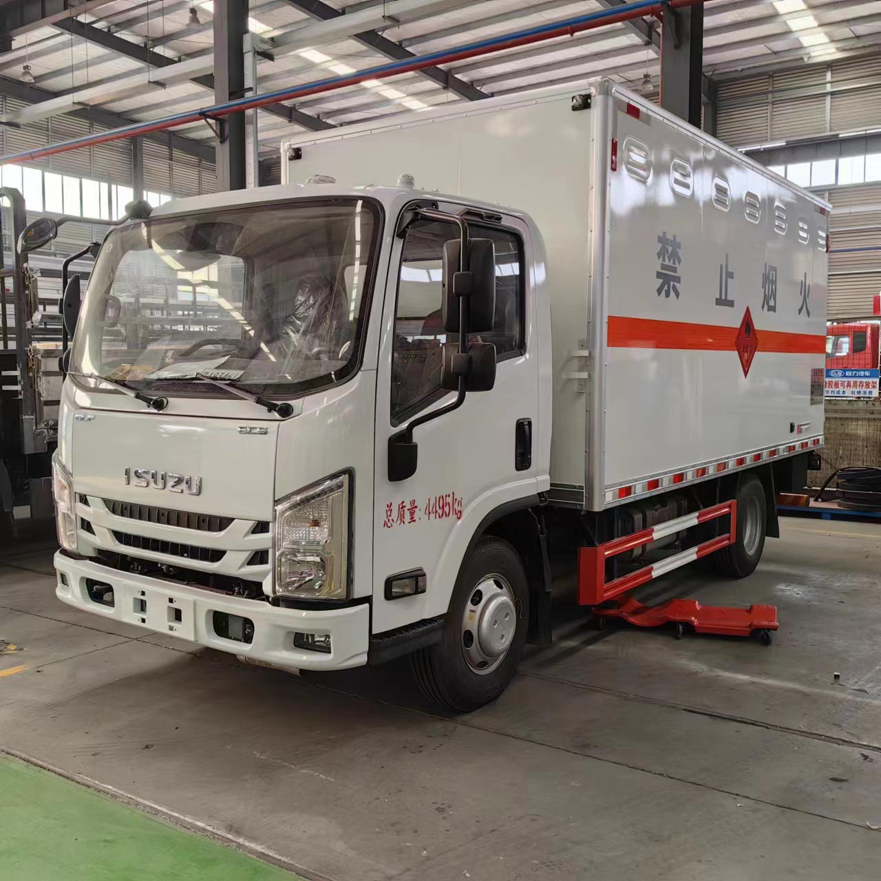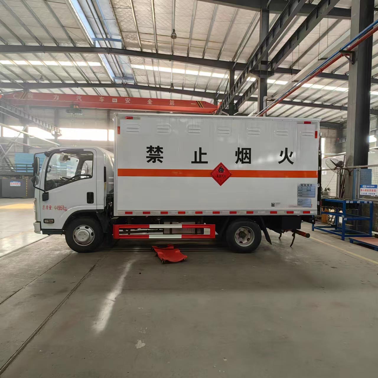 五十鈴國六帶液壓尾板易燃氣體廂式車采用的是五十鈴專用危險品車底盤,126馬力發動機,帶中控鎖、電動門窗、原廠空調。該車采用的是方正駕駛室,時尚的前臉帶著低調的內涵,不同風格的顏色可選擇定制車輛外觀不同,該車采用的是定制型的顏色,給人不同的體驗感。針對于運輸液化氣瓶、氧氣瓶、乙炔甲烷瓶都屬于二類運輸,該車箱體內設置有煙霧報警器和防盜報警器,底板鋪設有靜電膠皮。根據運輸要求,車廂可選擇瓦楞板箱體,也可選擇帶透氣孔箱體。為了保持車廂內空氣流通,車廂上下都是帶防雨透風口。
