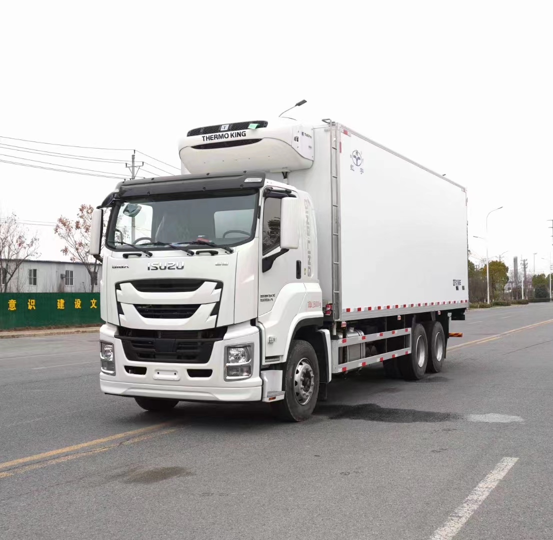 慶鈴五十鈴后雙橋國(guó)六冷藏車采用的是新款五十鈴巨咖5X駕駛室(平頭一排半(2人座駕駛室),五十鈴300馬力發(fā)動(dòng)機(jī)(6HK1-TCG60),采用的是氣懸駕駛室及氣懸座椅、冷暖空調(diào)、液壓方向助力、離合及剎車助力、定速巡航、多功能液晶儀表盤、電加熱后視鏡),五十鈴6HK1-TCG60發(fā)動(dòng)機(jī)(國(guó)六B排放標(biāo)準(zhǔn)、馬力300HP、扭矩1000N.m 、排量7.79L),法士特9JS119TA 變速箱(具有直接檔和爬坡檔的9檔式、帶同步器、手動(dòng)式),車橋(前盤后鼓式剎車、后橋速比4.555),驅(qū)動(dòng)方式:6×4(中后橋帶中央差速鎖),制動(dòng)系統(tǒng):斷氣剎、ABS、排氣制動(dòng),燃油箱(鋁合金400升),輪胎295/80R22.5。