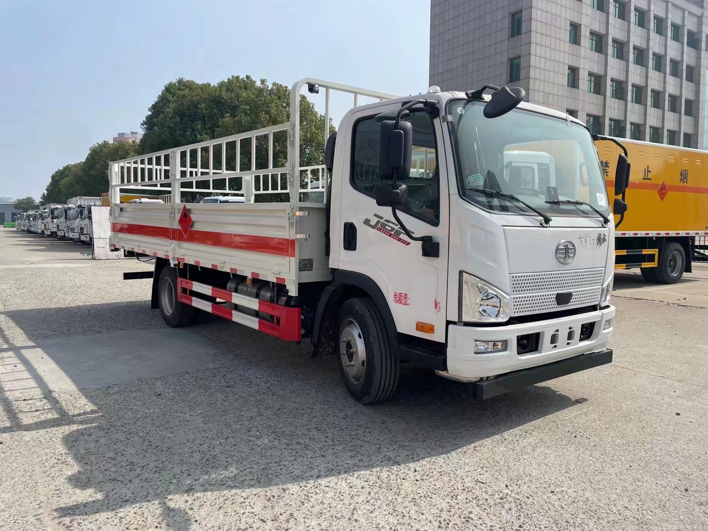 解放J6F國(guó)六5米5氣瓶車也可以選擇低欄板,顏色可多選,該車支持定制。