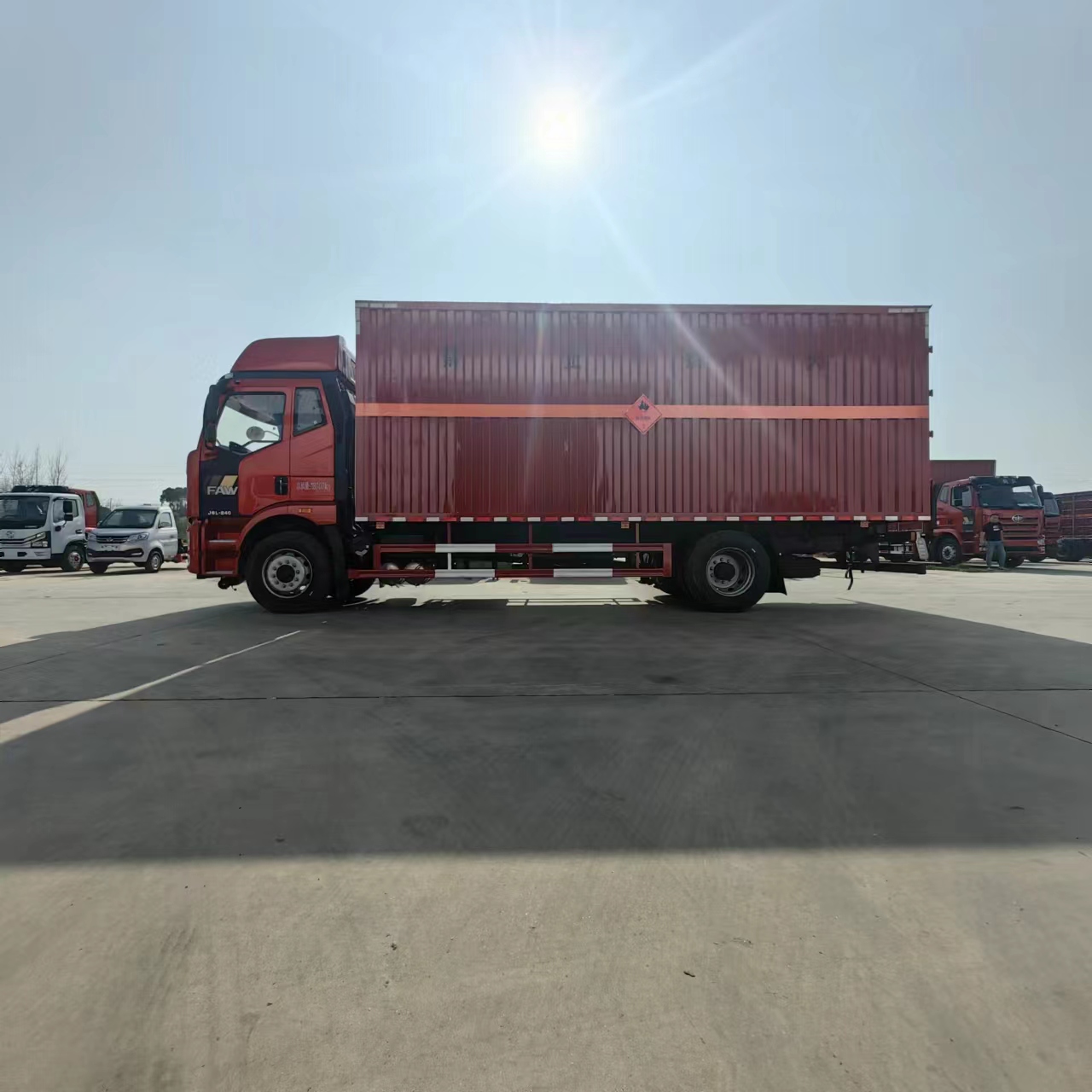 解放J6L國六高頂雙臥危險品車裝載噸位10噸,貨箱尺寸:7.6米和6.8米,箱體可多選,側門可選擇帶雙開雙側門,也可選擇單開側門,尾部可加裝后雙開門,尾部加裝液壓尾板,整車不超重,該車支持定制,可分期付款!