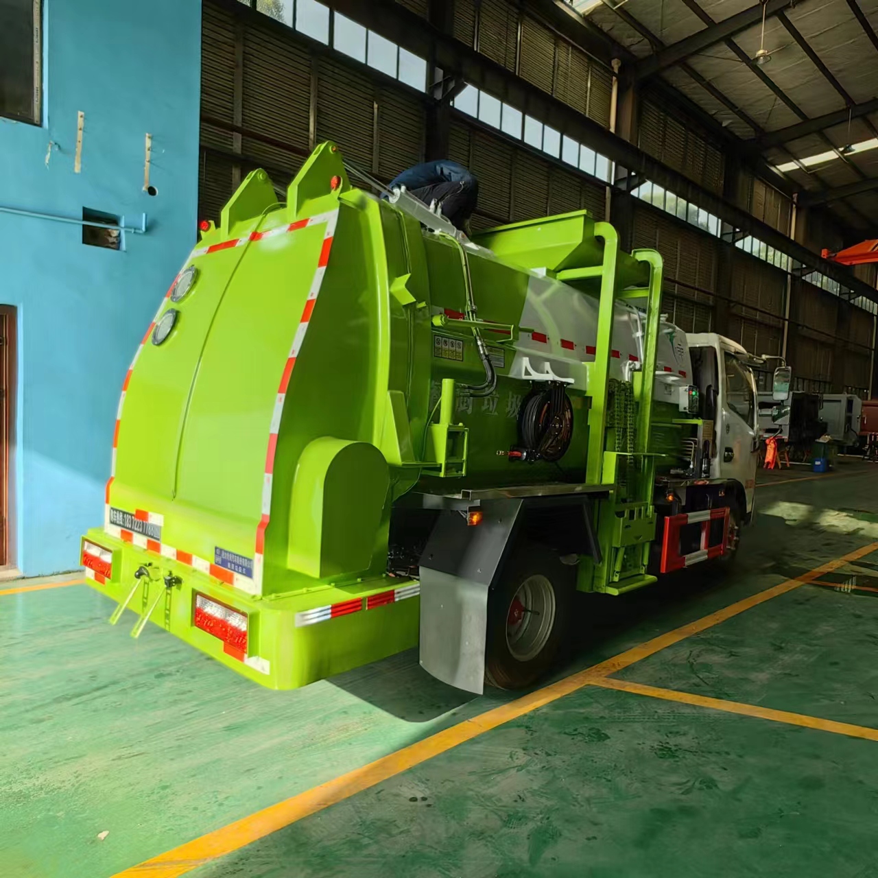 東風多利卡國六餐廚垃圾車顏色可多選,此次根據客戶要求定制的是白綠顏色,適合春天的顏色,看起來給人清新自然的感覺。餐廚垃圾車的提升機構及尾部翻轉均可根據實際用途進行定制,讓您使用更省心!