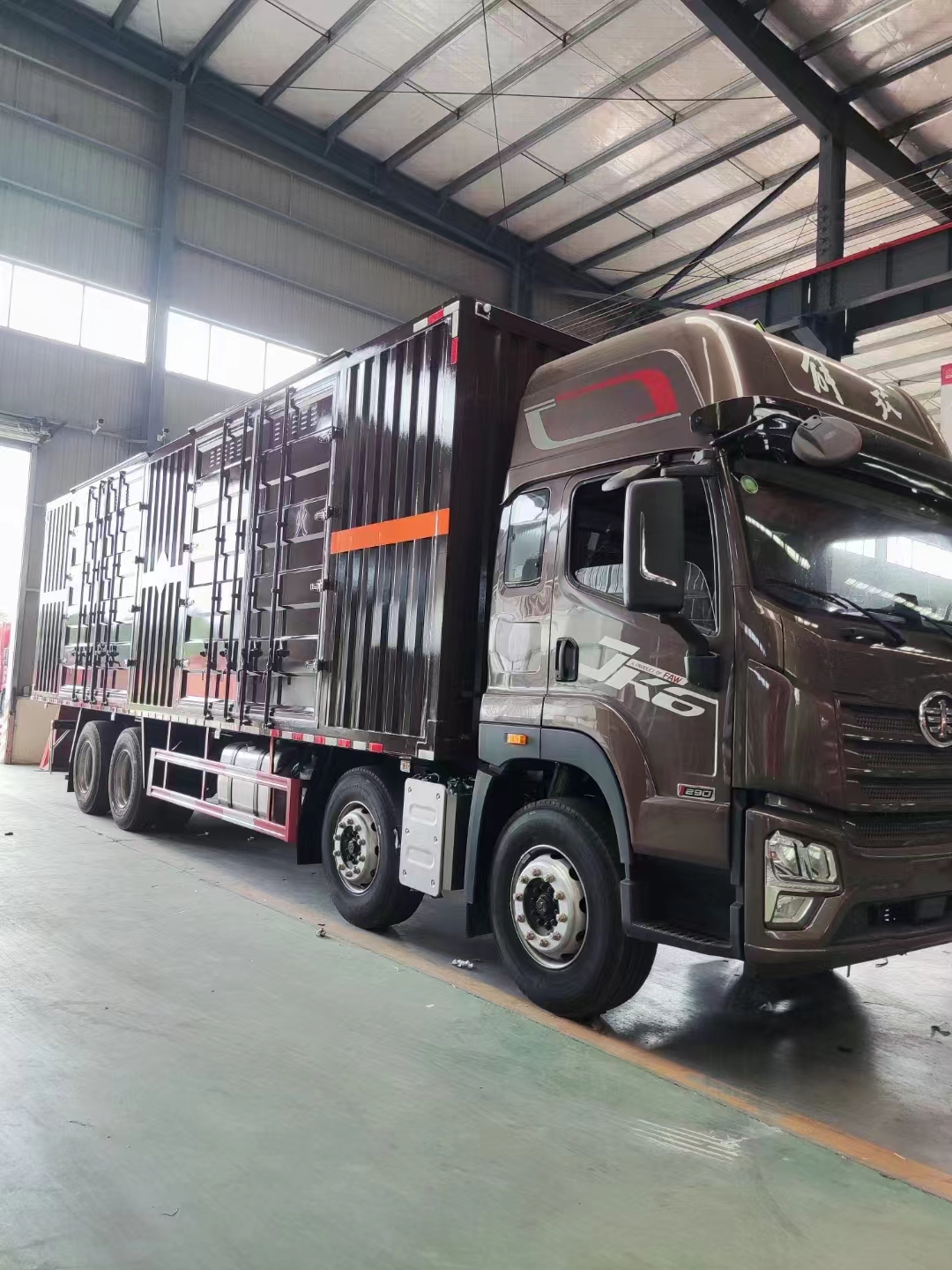 解放高頂雙臥前四后八腐蝕類廂式危險品車總質量32T,額定載質量20T,箱體尺寸:9650×2450/2400/2380×2600/2400,與其他車型相比的話,該車采用大柴350馬力發動機,一汽10檔變速箱,1900+4500+1350mm軸距,長軸距車型不用擔心后懸長車輛翹頭的問題。295/80R22.5輪胎,橫截面大車輛承載力強,帶取力器,前盤后楔制動器,板簧3/3/2+-/2+-,2氣囊,帶進口ECAS,電控氣囊懸掛,二軸帶橫向穩定桿,空氣彈簧座椅,帶中間座椅,電動門窗,電動后視鏡,電動舉升、爆胎應急裝置、有前碰撞預警+有車道偏離系統、T-BOX在北方很多人喜歡用解放的車型,主要在于車輛的使用性能更高端,配置更齊全。為了讓車主能享受到經濟實惠,又能讓車輛耐用。該車全部采用的是烤漆噴粉工藝,車輛油漆不會容易風化,外觀看起來更協調,尤其是棕色,外觀很低調,車輛臟不容易看出來。