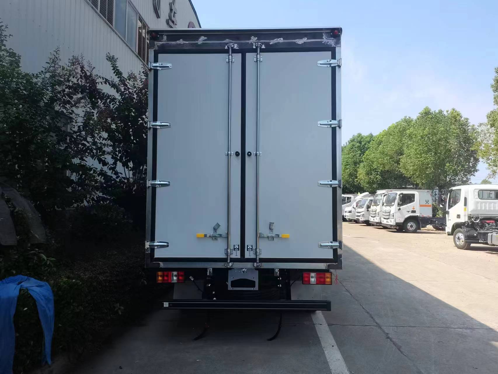 江鈴凱運國六藍(lán)牌20立方爆破車貨箱尺寸:4200*2100*2600mm,容積可達(dá)23立方,目前藍(lán)牌容積可達(dá)到最大,在車型中非常有優(yōu)勢。箱體選用的是雙層金屬結(jié)構(gòu),外板采用靜電屏蔽烤漆板,中間填充B1級阻燃泡沫,內(nèi)飾為鋁板。廂體上側(cè)安裝防雨通風(fēng)透氣孔。底板為花紋板,上鋪防靜電膠皮,廂體右側(cè)中開單側(cè)門。廂內(nèi)兩側(cè)加裝固定貨物臥環(huán),門框帶防盜報警器,頂部帶煙霧報警器。配備隨車工具,滅火器,三角頂燈,防靜電拖帶,貼反光標(biāo)識等。其他按公告標(biāo)準(zhǔn)制作。