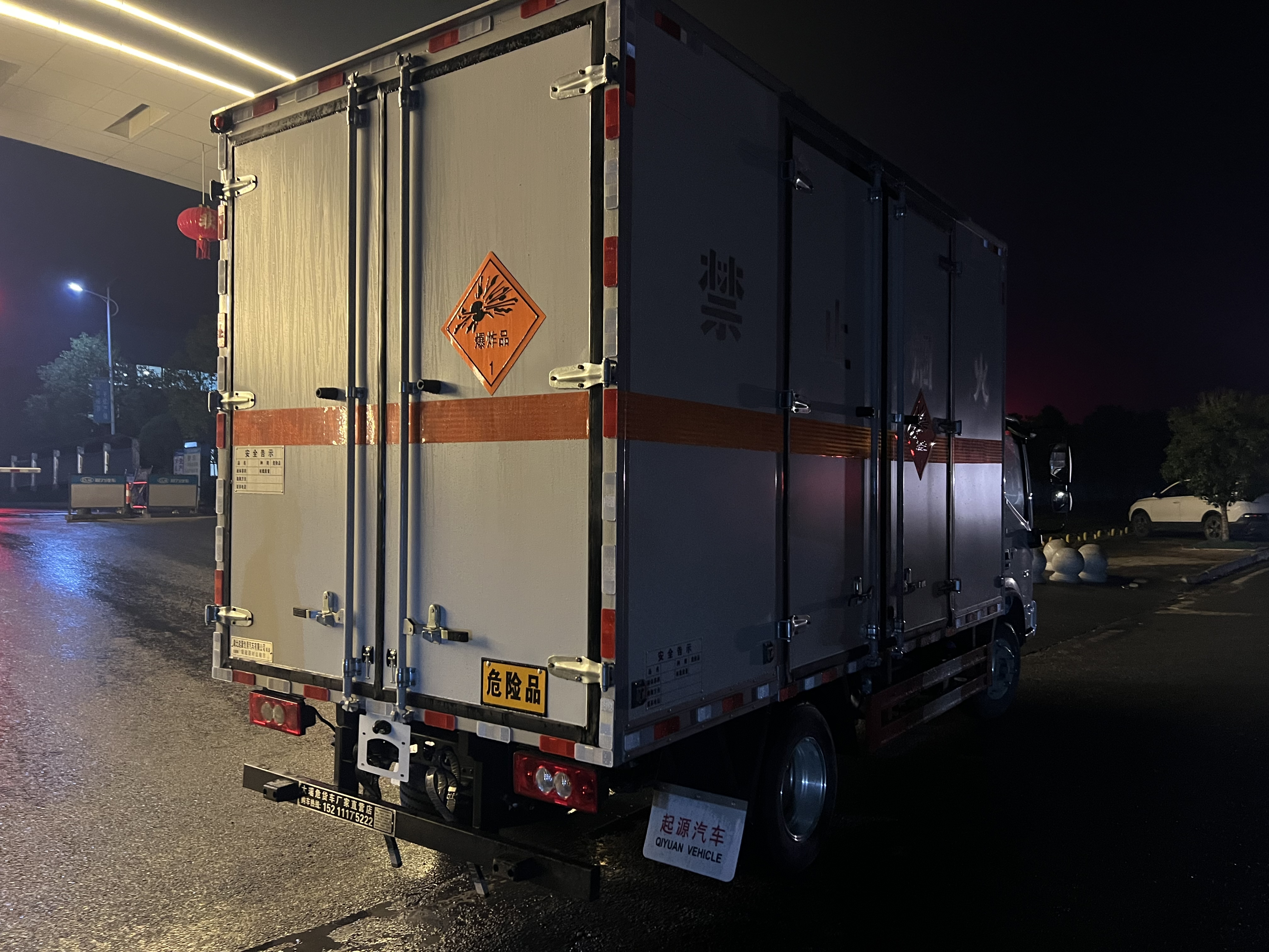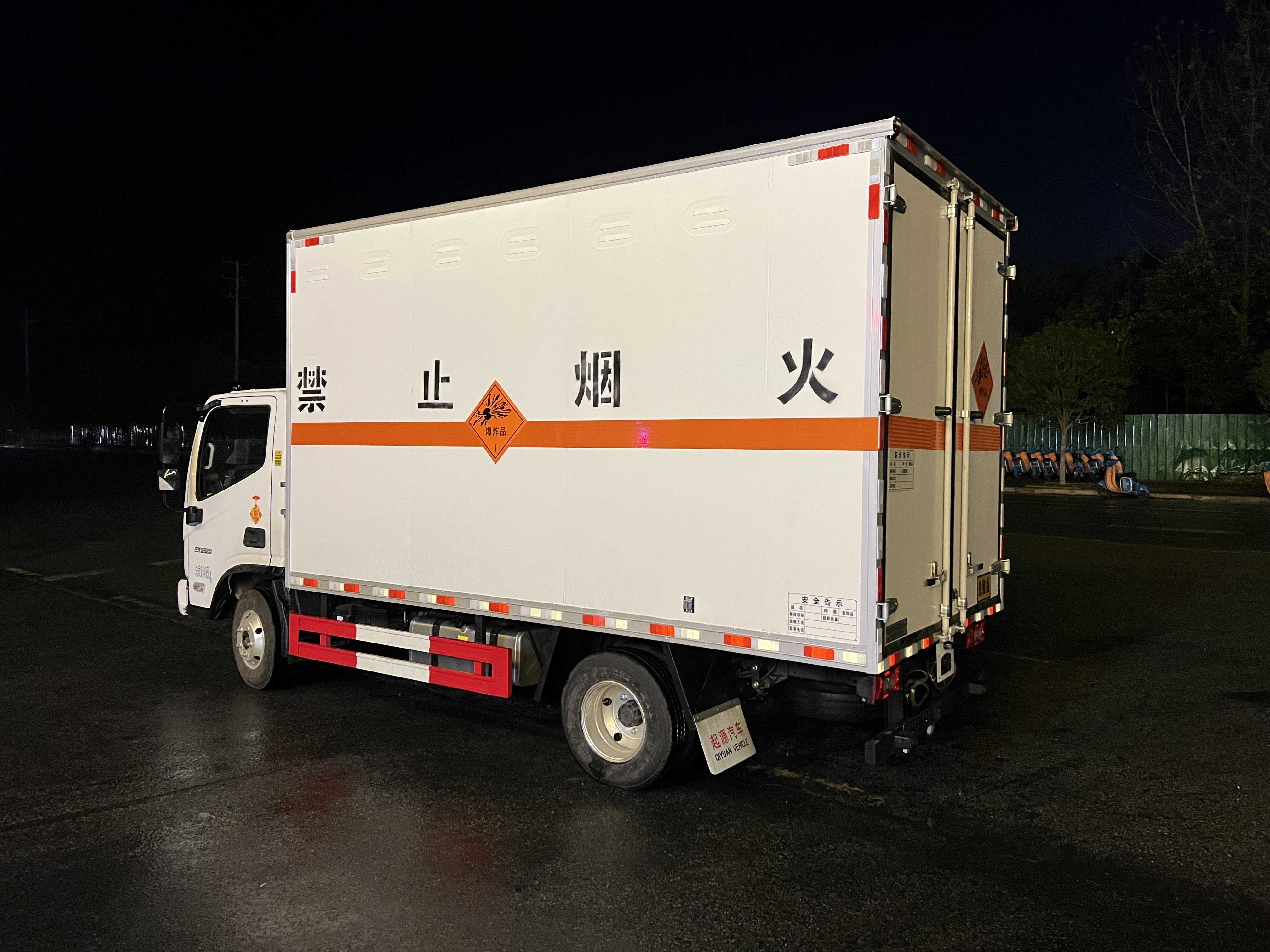 福田歐馬可國六藍牌20立方爆破車嚴格按照公告尺寸制作,外板采用1mm厚冷軋板有一次性成型的百葉窗,內(nèi)飾為導電性能良好的鋁板有透氣孔,內(nèi)襯為矩形管骨架牢靠穩(wěn)定,內(nèi)部填充為透氣防潮阻燃的擠塑板,四種材料經(jīng)現(xiàn)代工藝復合而成,廂體外部上下鋁合金型材包邊,底板和車廂前下部鋪橡膠皮,后門雙開,右側前部單開門,帶可卸式隔艙,內(nèi)部有固定貨物的臥環(huán),車輛外部有靜電帶、滅火器、防火罩,車廂內(nèi)安裝煙霧報警器和門防盜報警器,嚴格按照國家危險品相關法規(guī)張貼。