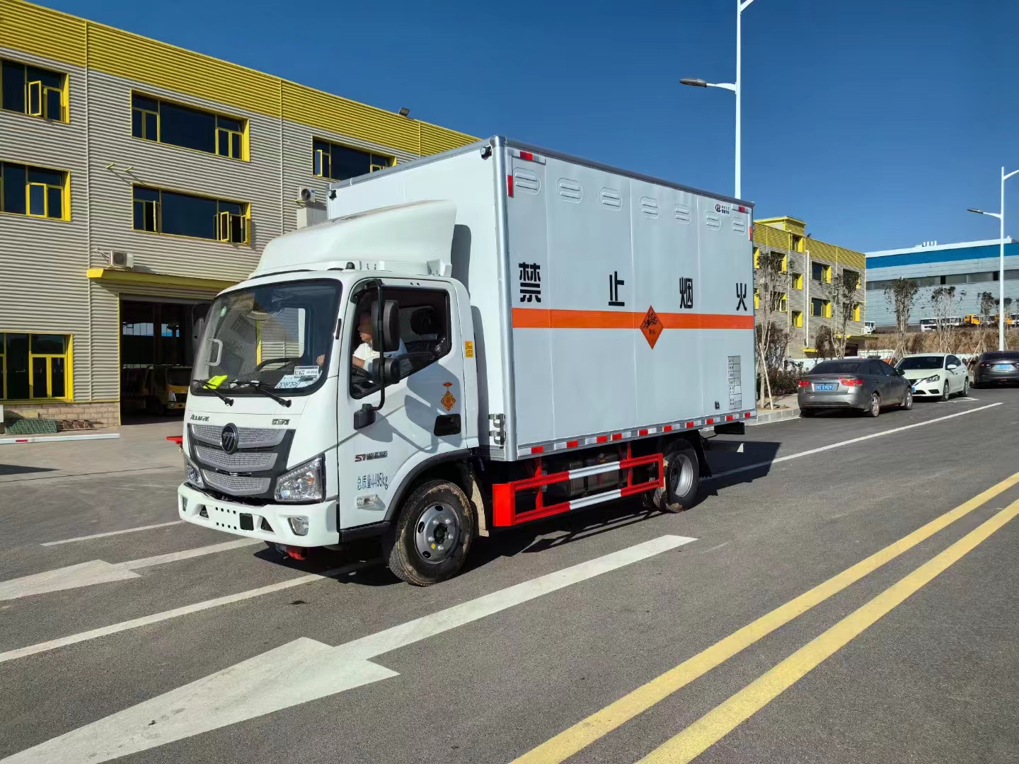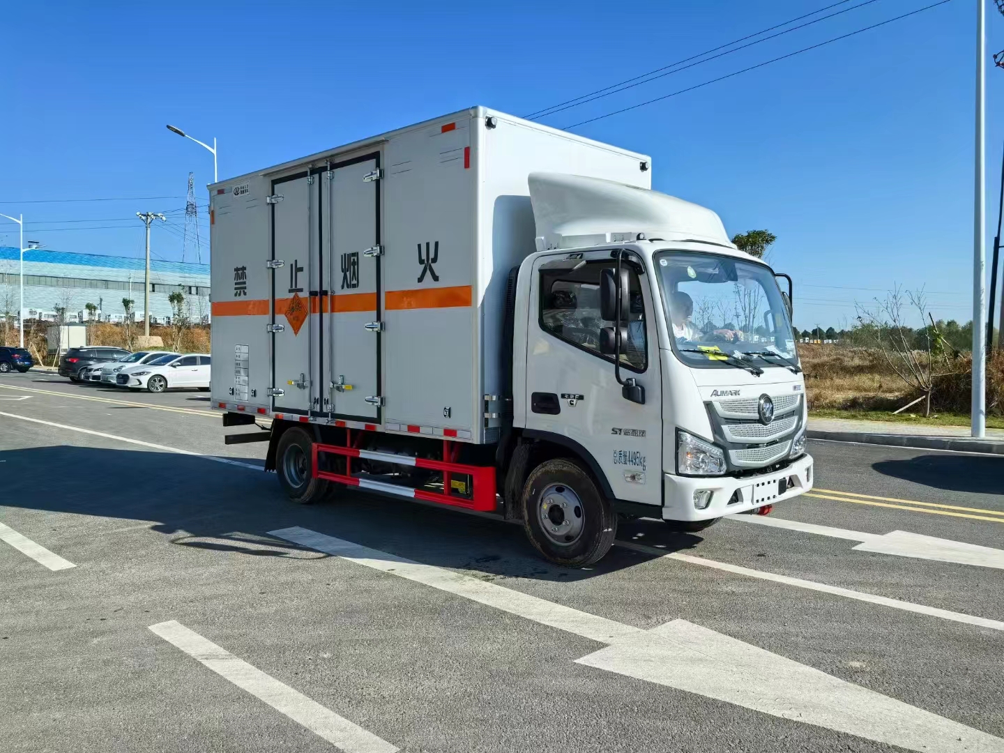 福田歐馬可國六帶導流罩危爆車采用的是專用危險品車底盤,康明斯131馬力發動機,原廠空調,寬體3人座駕駛室,承載力更強。為了使用更省心。該車箱體寬敞,容積可達20立方。貨箱尺寸:4150*2100*2300mm。箱體選用了專用復合帶阻燃箱體,側門可多選,可帶一個雙開側門和單開門,重點是尾部可加裝液壓尾板,整車不超重。