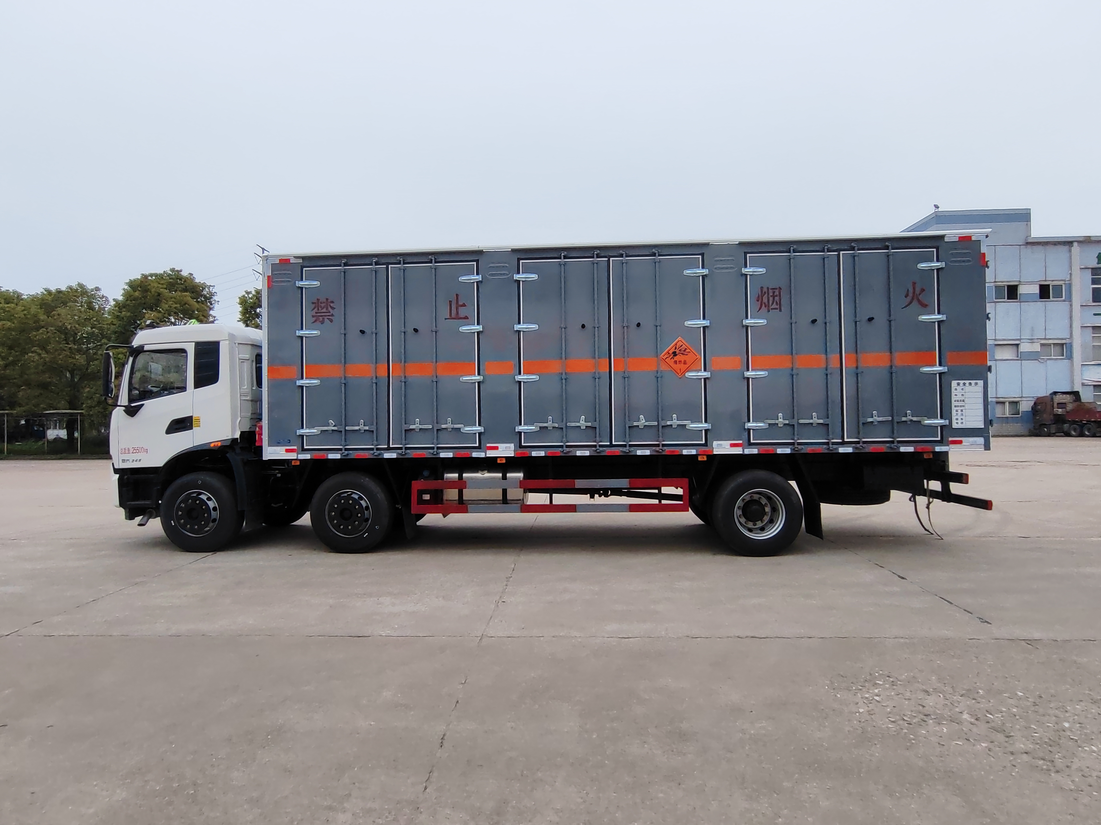 東風天錦三軸帶左右開門危險品車箱體選用的是加寬加厚鎖件,定制的是三個對開側門,裝貨更方便。尾部可加裝液壓尾板,箱體還可以選擇防阻燃材料的復合板箱體,多種可選,讓您使用更省心!