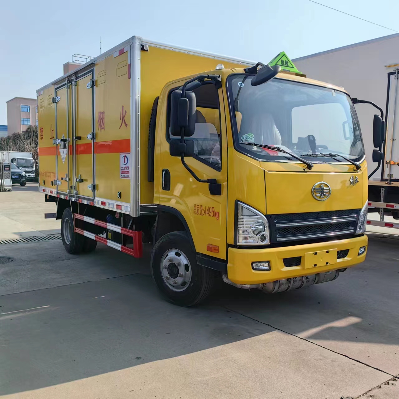 解放虎V國六黃色雜項危險品車選用的是寬體3人座駕駛室,可選濰柴130馬力或者錫柴140馬力發動機,匹配的是帶中控鎖、電動門窗、原廠空調等配置,解放定制的整車工程黃,顯眼奪目很容易被識別,也給周邊的人一種提示作用。針對專門運輸九類的車型,我司定制的是專用的污水槽,箱體底部帶廢液收集箱,便于清理廢機油、廢鎘、廢液、廢油渣等九類危險品。為了讓車輛更安全,我司的所有車輛全部采用的是防爆防阻燃箱體,箱內全部匹配的是煙霧提示器和防盜提示器。箱體側門可選帶一個雙開側門、兩個雙開側門,或者加裝液壓尾板,多種配置可選,讓您適應更省心!