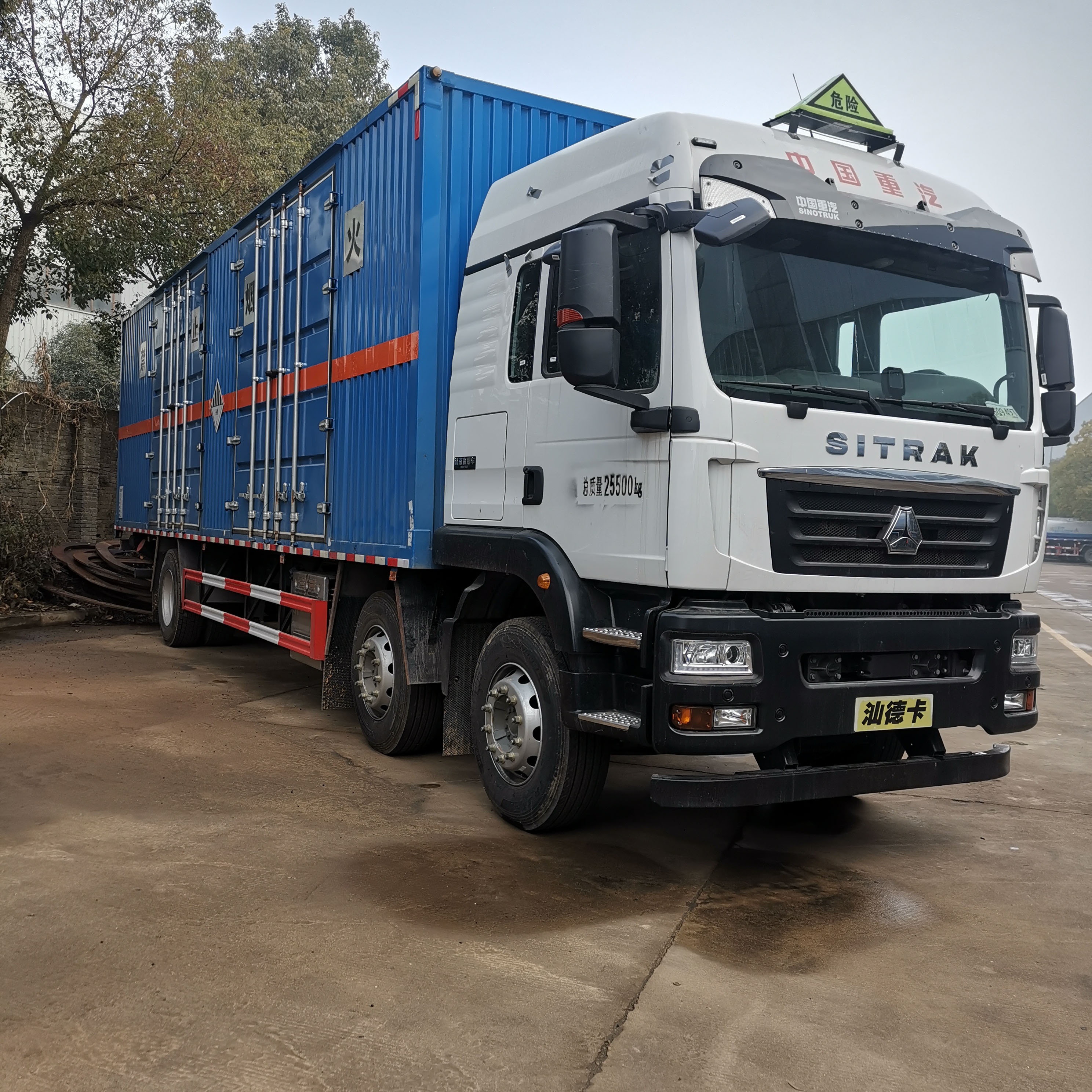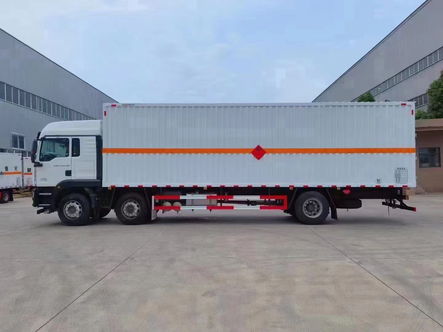 汕德卡三軸350馬力爆破器材運輸車箱體選用的是加厚的復合板工藝,烤漆板車輛外觀耐腐蝕。箱體可選左右開門,尾部可加裝液壓尾板。一般運輸煙花的用戶都想要容積大的車型,該款車輛長度為9米6.箱體寬度為2.45米,高度可達2.7米,容積可達63.5立方。尾部可加裝液壓尾板,整車不超重。