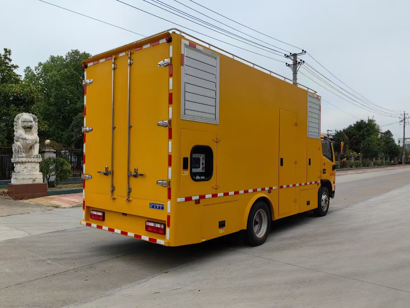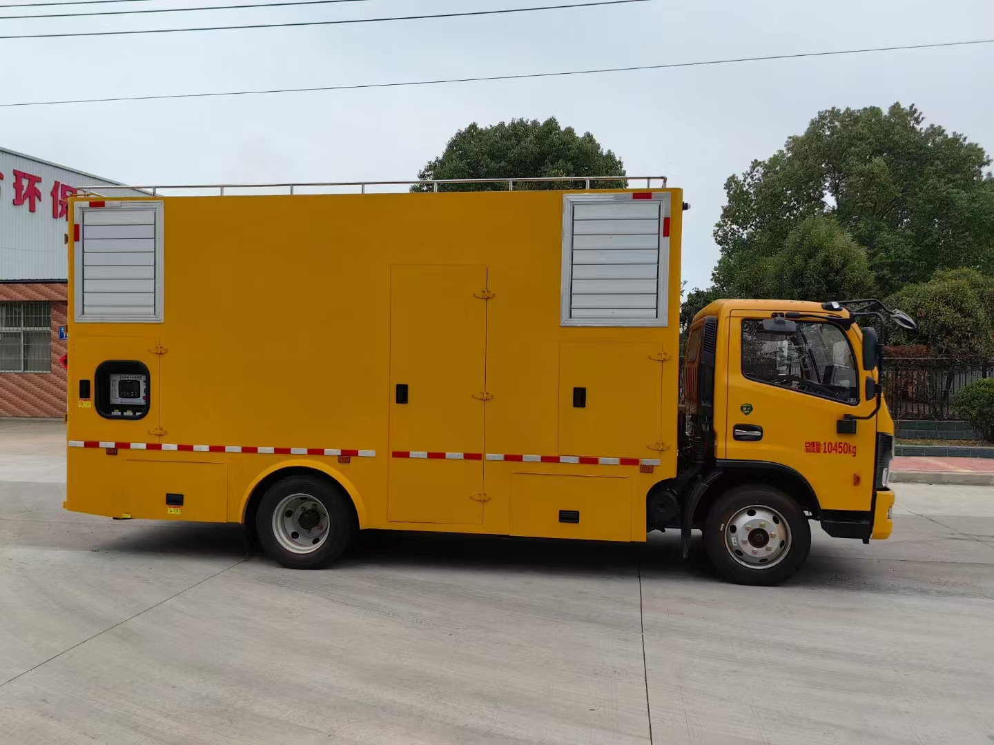 東風多利卡D7國六應急電源車整車型號:CL5100XDY6ACC,軸距3800mm,底盤型號:EQ1125SJ8CDC ,匹配有原廠空調,方向助力,中控鎖,電動窗,玉柴 165 馬力,6檔變速箱。廂體外部鋼材為優質冷軋鋼板,內襯優質冷軋鋼板折彎骨架,工藝先進,強度牢固。廂體為全密封結構,具備運輸、防雨、防腐、防火、防銹要求。車廂尾部為對開門。發電機組進排風消聲處理,消聲器做降噪處理。發電機組采用無刷發電機組,機組功率≥200KW,能滿足全負荷長時間連續安全運行,額定頻率 50HZ,額電壓 220/400V。調速方式:電子調速、啟動電瓶,電瓶總閘。發電機組的底座油箱容積能保證發電機組全負荷運行 8 小時所用,安裝位置合理方便維護人員日常加油。控制系統可現實水溫、油壓、轉速、頻率,各項電壓、電流、功率等均可實現一鍵智能化。車輛安裝四只液壓支撐腿,可在駐車狀態均分車輛靜壓,保護車輪及彈簧鋼板。選用進口優質多路閥組,液壓支撐缸采用進口密封件,單支腿靜載荷5噸,加裝雙向液壓鎖。