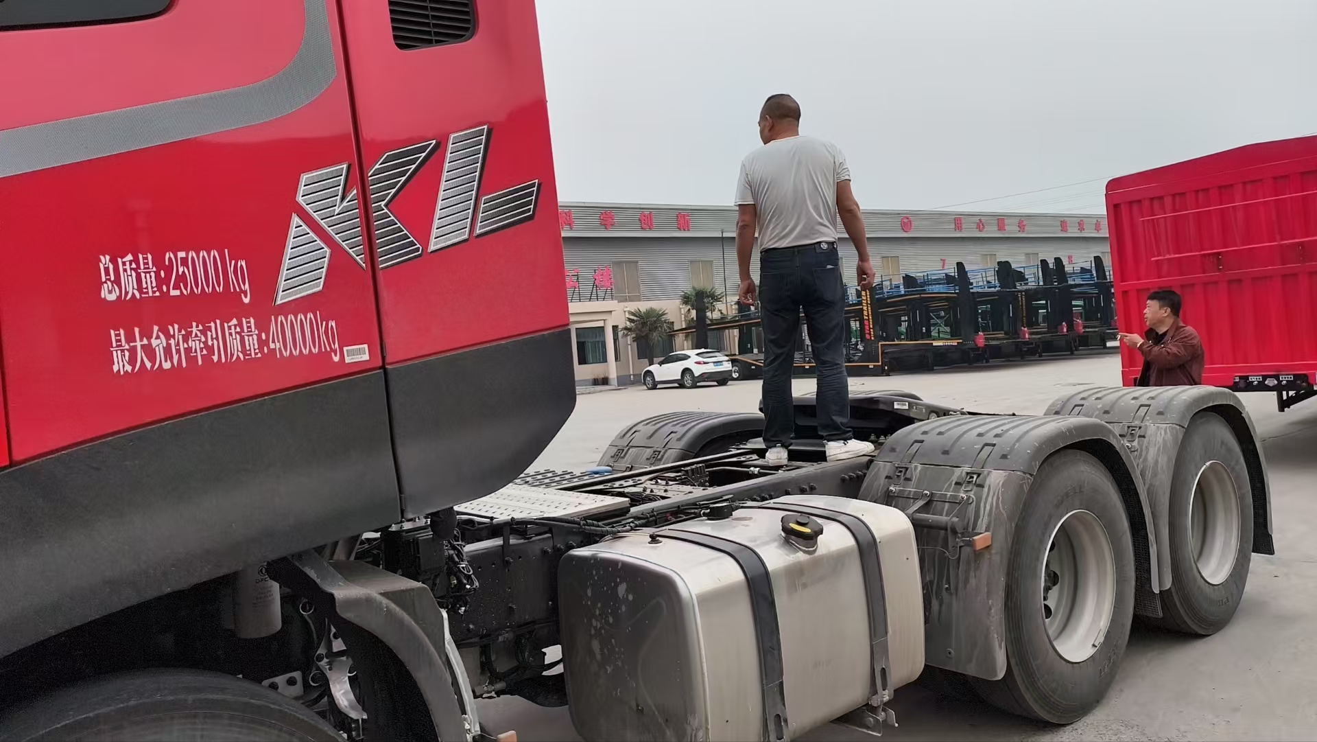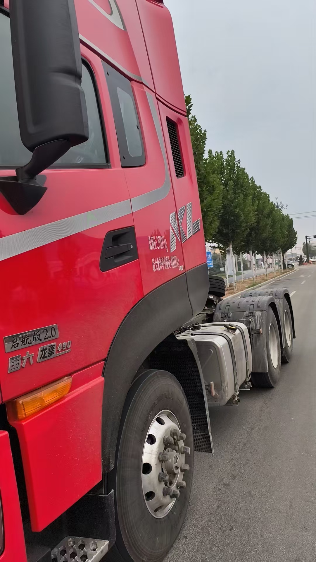 東風天龍國六龍擎490馬力危險品牽引車選擇的是高頂雙臥駕駛室,DT1425DD變速箱,加長型軸距,東風400軸距,3.07速比,400L油箱,加裝福伊特液力緩速器,帶前盤后鼓,帶50銷座,匹配有胎壓監測、轉向輪差速鎖。時尚霸氣的外觀,