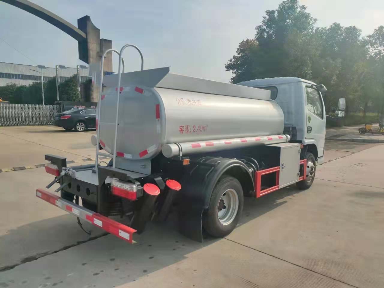東風多利卡藍牌供液車根據裝載要求,罐體采用的是方圓罐,公告有效容積2.38方,罐體厚度采用3.5MM優質碳鋼板制作,一個歐標罐口,一個海底閥,后面帶緊急切斷閥,駕駛室按開關,水壓封頭,圍邊內鋪防滑網,帶自吸自排60-30泵,泵箱裝右邊,預留大流量供液設備及卷盤位置在左側,兩根輸油管,帶牌照燈座,鐵炮筒,兩個滅火器,其余廠內標配。油漆:銀粉色。
