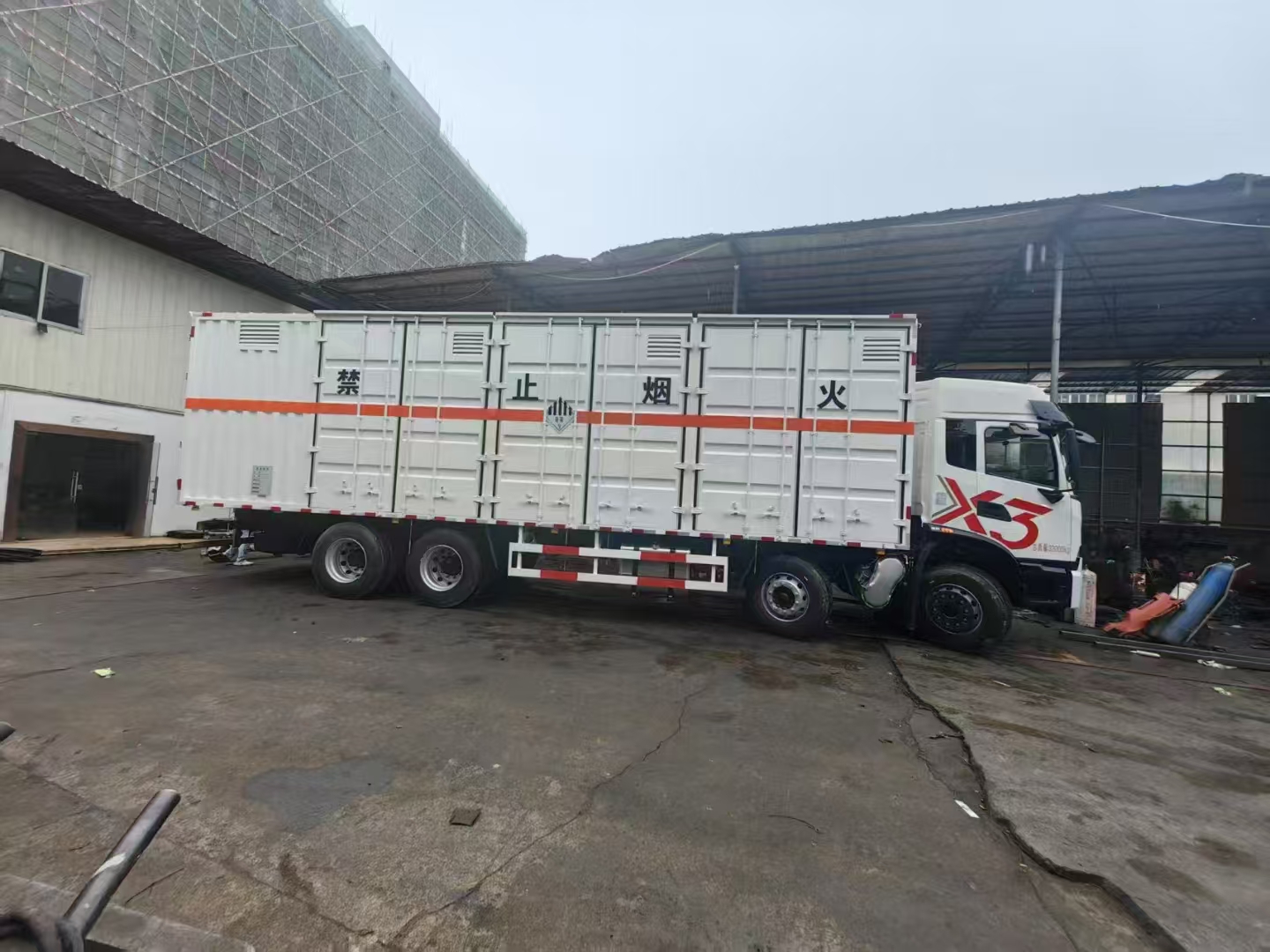 東風X3帶三開側門雜項危險品車是一款專門為九類雜項危險物品設計的廂式運輸車,高頂雙臥的駕駛室,玉柴350馬力發動機,法士特10檔變速箱,豪華內飾東風性價比高的一款選擇。相比同類前四后八的車型,該車遠比同類車輛價格更有優勢。但是配置不輸其他車型。專用的定制貨箱,可選多種開門形式,裝貨更方便。尾部可加裝液壓尾板,整車不超重。