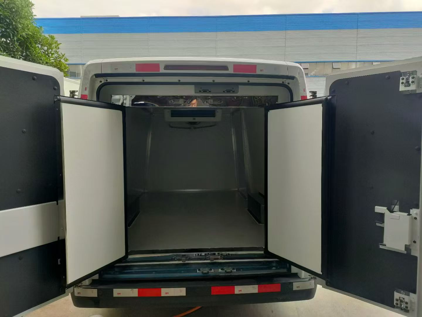 長頭設計增大前懸,增加潰縮吸能空間;籠式車身,上鋁下鋼,安全性與輕量化的完美結合,可360°保護車內人員。國內最新純電制冷機組,能有效保證續航里程,純電動冷凍專用渦旋壓縮機,噪音低,耐環境工況范圍-30℃-+50℃。定制玻璃鋼廂板搭配80mm高密度聚氨酷(自研),在保證冷藏性能同時最大化利用車廂原有空間,內部容積達到5.69m,同級別產品最大空間。