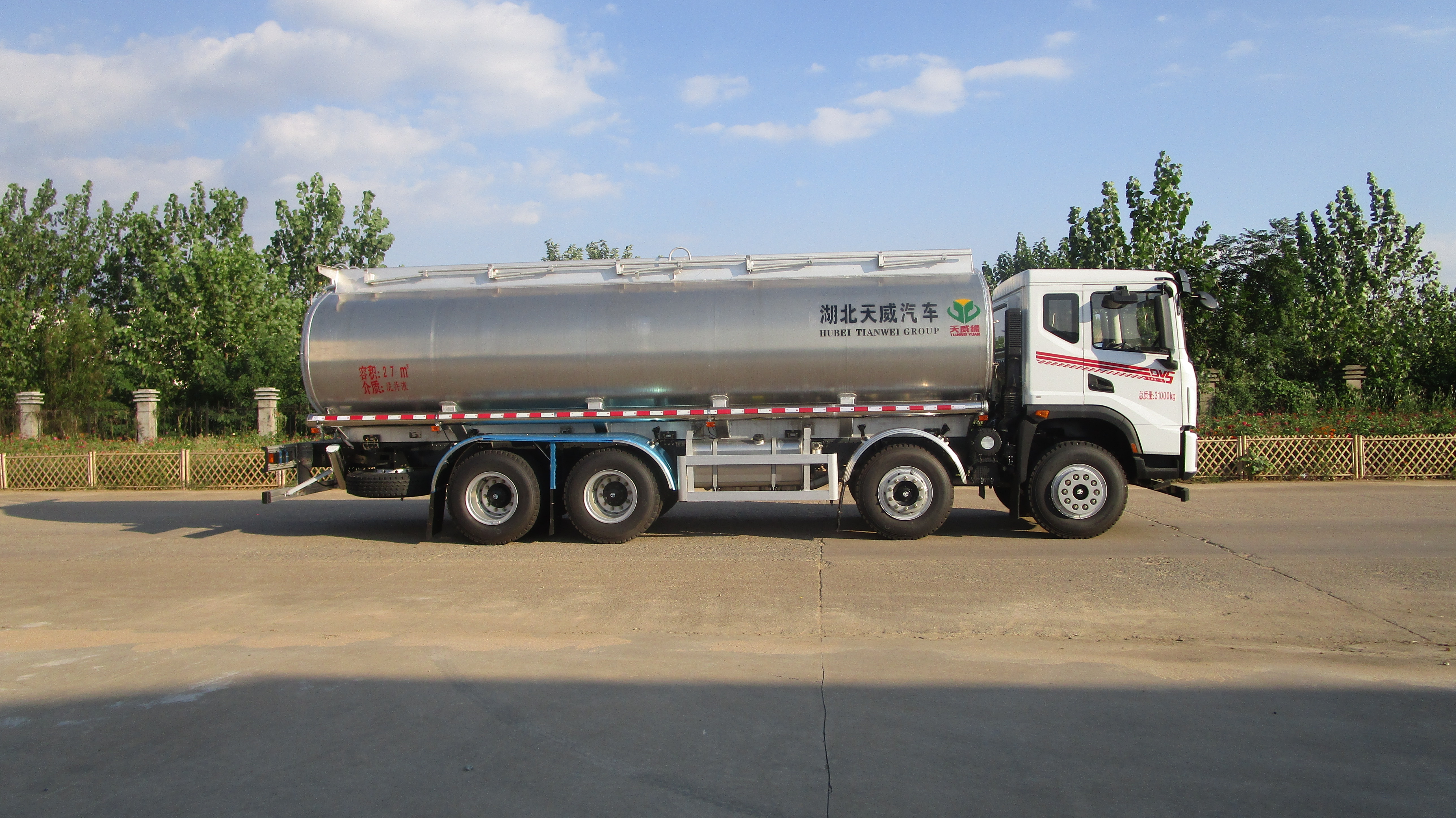 東風華神前四后八鋁合金供液車方圓罐,罐體總容量27立方,罐體厚度采用6mm優質鋁合金板制作,兩個歐標罐口,一個海底閥,水壓封頭,配專用油泵(可泵進泵出),泵箱裝右邊,兩根輸油管,帶牌照燈座,鐵炮筒,帶網狀走道,罐體上部裝伸縮護欄,兩個滅火器,上裝附件都為鋁合金。