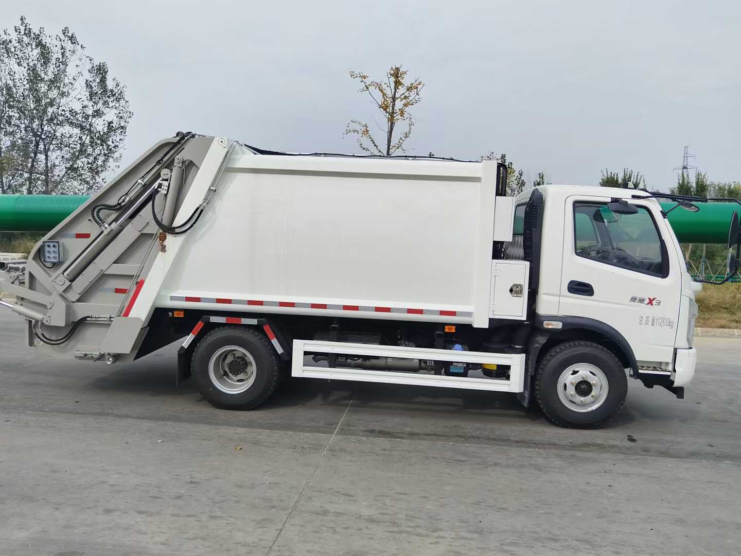 飛碟9方國六壓縮垃圾車整車公告型號: CSC5110ZYSDF6,底盤公告型號:FD1110W17K6,奧馳X3寬體2100mm駕駛室,3300mm軸距,云內150馬力發動機,長泰8檔帶高低檔,8噸承載后橋,8.25R16 輪胎,200×(6+4)通雙層大梁,斷氣剎,電動門窗,中控鎖,遙控鑰匙,原廠空調。罐體涂裝噴粉烤漆工藝,箱體容積為9立方米,低合金高強度鋼制作,恒力油缸、標配睿宸油泵(單泵)、嘉善取力器,揚州中梅6聯多路閥 ,箱體與填充器獨立鎖緊更穩定可靠,尾部翻桶結構可掛國標120L/240L/660L方塑料桶。外置滑板油缸裝載更強,車載專用定制版PLC電控系統,駕駛室及尾部一鍵操作,單側電控操作盒 ,帶氣動密封蓋,標配填充器底部一個污水箱。選裝側掛污水箱。