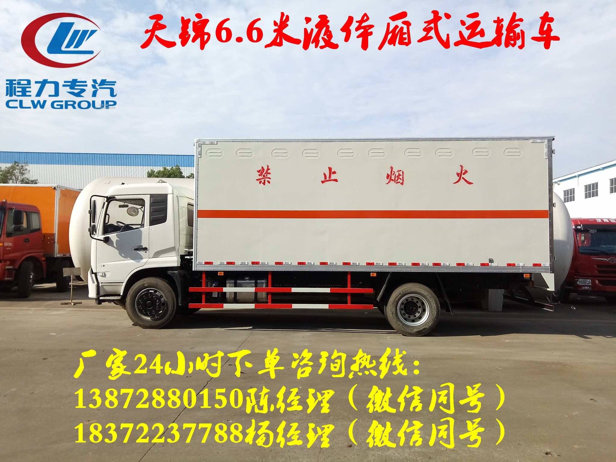 2)東風天錦6米6(額載9.9噸)易燃液體廂式運輸車